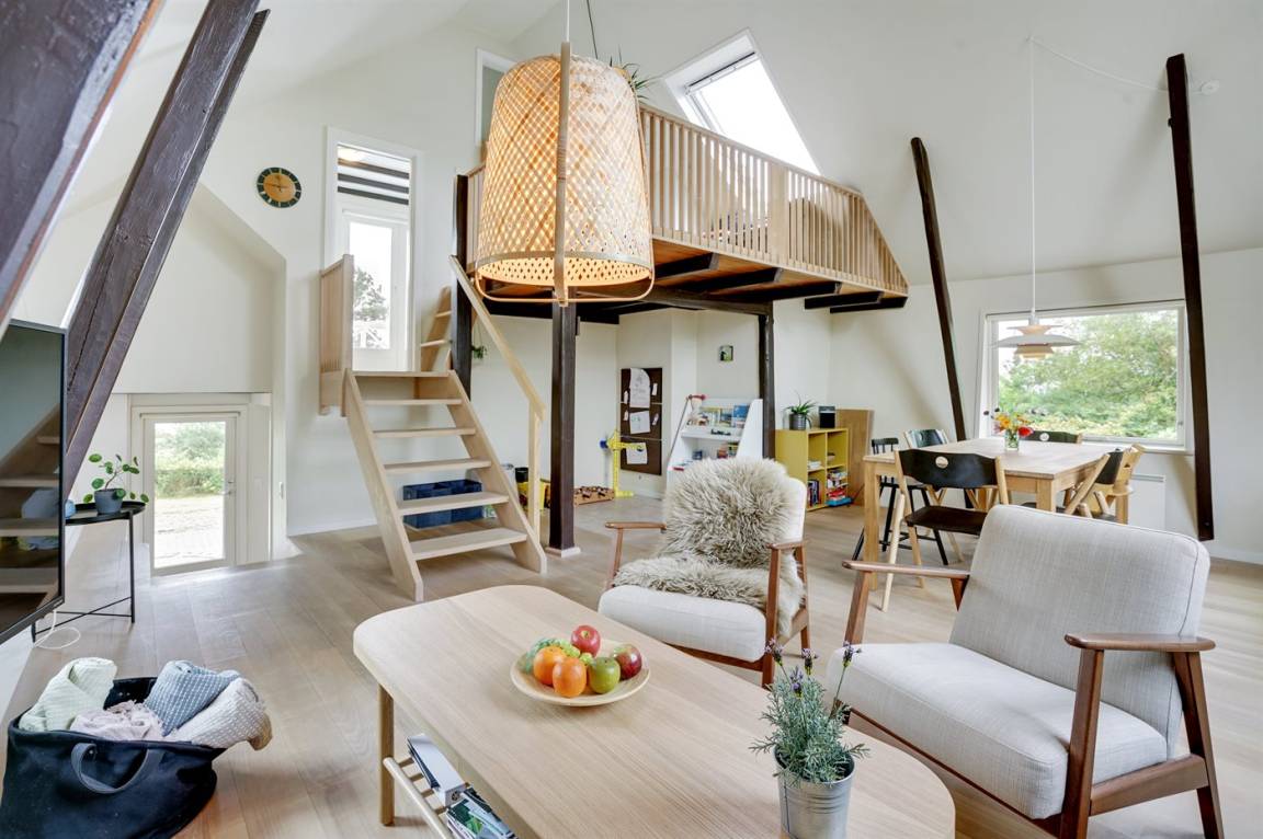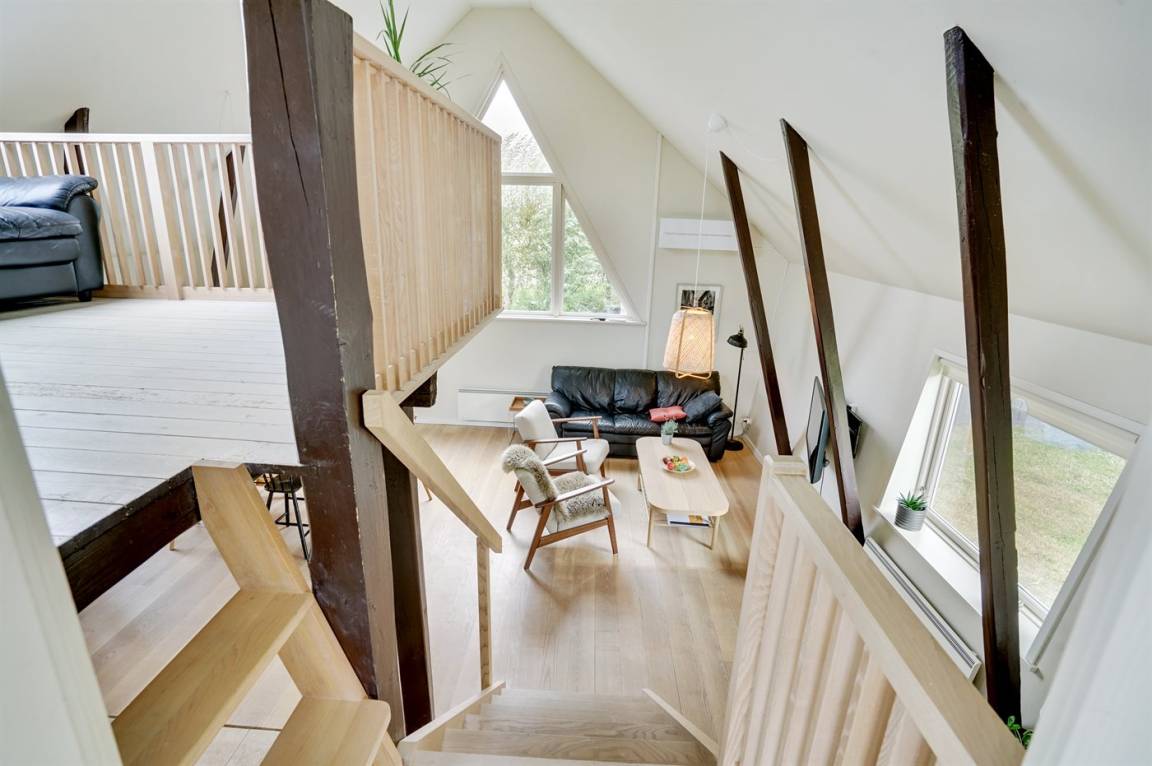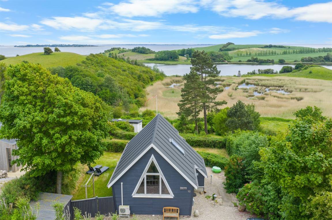 In dem landschaftlich schönen Gebiet Dyreborg liegt dieses reizende Ferienhaus, wo Sie von der Terrasse und dem Balkon aus Ausblick auf große Teile des Inselmeers von Südfünen und auf das Naturgebiet "Knolden" mit seinem reichen Vogelleben haben. Das Haus ist in versetzter Ebene gebaut mit Küche, Schlafzimmer und Badezimmer im Erdgeschoss, ein großes Wohnzimmer im mittleren Geschoss sowie ein Schlafzimmer im Obergeschoss. Von hier haben Sie Zugang zu einem offenen Obergeschoss mit einem weiteren Schlafzimmer (aufgrund der Zugänglichkeit nur für größere Kinder/jugendliche geeignet).