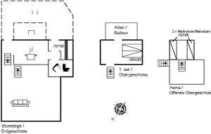SchlafverhältnisseDie Schlafplätze verteilen sich auf 2 Schlafräume. 2 Schlafplätze in einem Doppelbett. 2 Schlafplätze in einem Etagenbett. 2 Schlafplätze auf Matratzen. 2 von diesen Schlafplätzen befinden sich im offenen Obergeschoss. Ferner steht ein Kinderbett zur Verfügung.