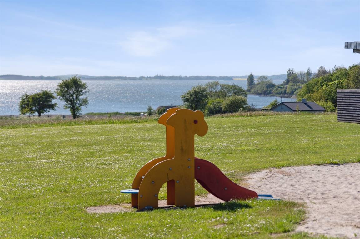 Auf dem Gemeinschaftsgelände gibt es einen großen Spielplatz, und im Sommer gibt es einen gemeinsamen Badesteg am Strand.