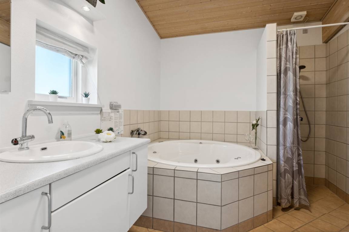 Dieses schöne, hell eingerichtete Ferienhaus befindet sich in dem beliebten Feriengebiet Mosegården. Das Haus liegt als eines der hinteren und damit höher gelegenen Häuser in der Gegend, weshalb die Aussicht über die Dänische Südsee (Sydfynske Øhav) sowohl vom Haus als auch von der Terrasse und besonders von dem Balkon im Obergeschoss aus fantastisch ist.