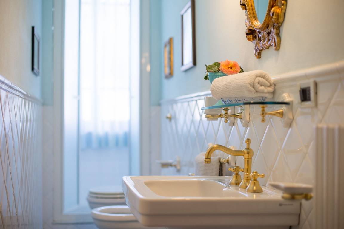 Badezimmer 1: Waschbecken, WC, Bidet, Dusche.