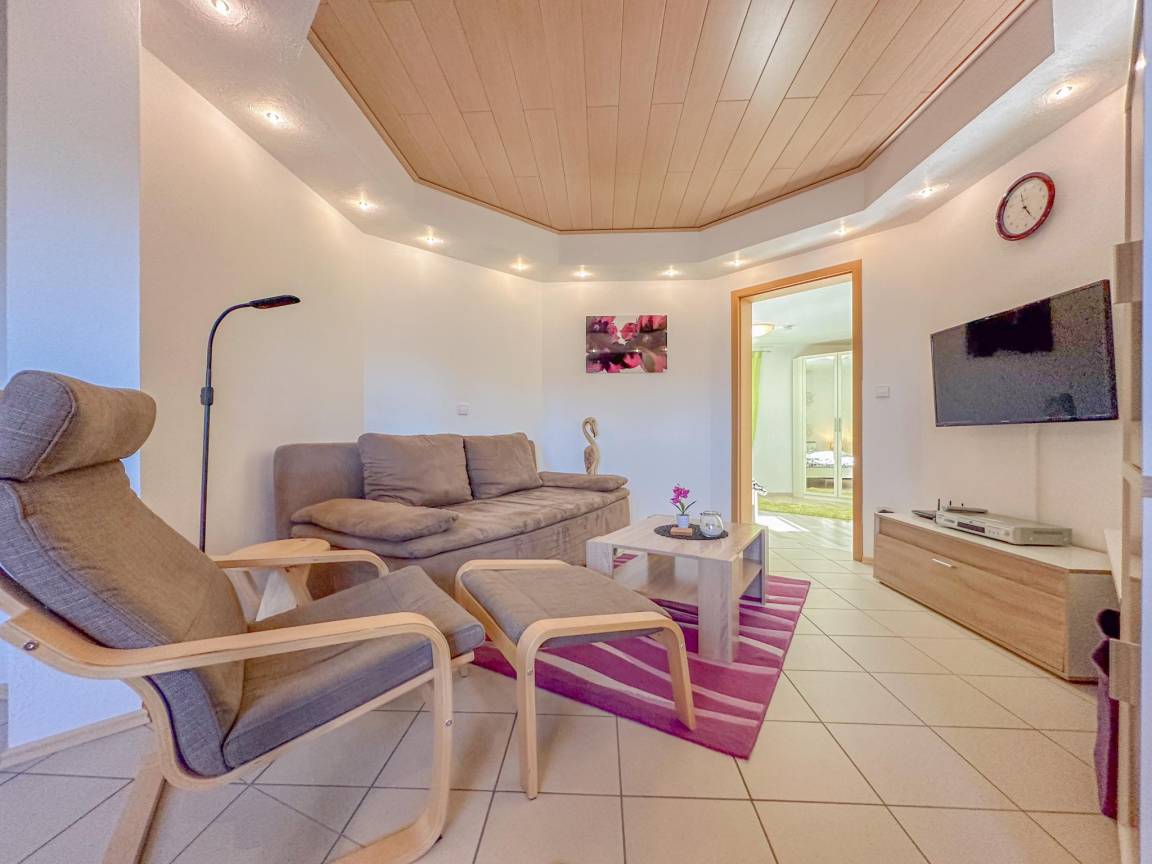 Hausbeschreibung : Nur 10 km von Cochem entfernt, in einem ruhigen Dorf, liegt diese schöne Souterrainwohnung, wo es im Sommer angenehm kühl bleibt. Ideal für ein Paar, mit 1 komfortablen Schlafzimmer, gut ausgestatteter Küche, entspannende Sitzecke mit TV und ein eigenes Bad, haben Sie alles was Sie brauchen. Das große Plus ist der eingezäunte Garten mit 2 Terrassen. Sie parken sicher auf einem Privatgrundstück und können Ihr Auto aufladen. Obwohl die Gegend touristisch ist, werden Sie hier Ruhe genießen