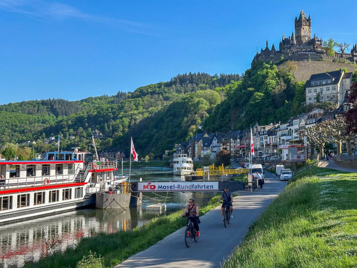 Nicht weit entfernt liegt ein weiteres Kleinod: Burg Eltz. Versteckt in einem bewaldeten Tal gelegen, scheint diese perfekt erhaltene Burg direkt aus einem Fantasy-Film zu stammen. Sie ist über einen idyllischen Wanderweg oder eine kurze Autofahrt zu erreichen, und im Inneren kann man durch jahrhundertealte Säle voller Geschichte wandeln. Die Region ist auch bei Wanderern und Radfahrern beliebt, denn es gibt zahlreiche Routen entlang des Flusses, durch Wälder und über Weinberge. Ob Sie nun Ruhe, Kultur, Natur oder Gastronomie suchen: Sie werden hier alles finden.