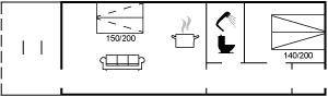 SchlafverhältnisseEs gibt einen Schlafraum. 2 Schlafplätze in einem Doppelbett. 2 Schlafplätze auf einer Doppelschlafcouch.