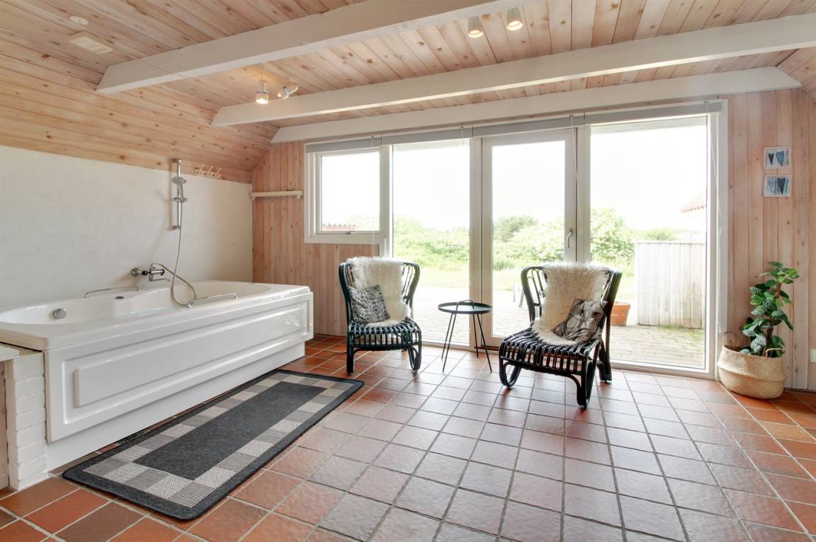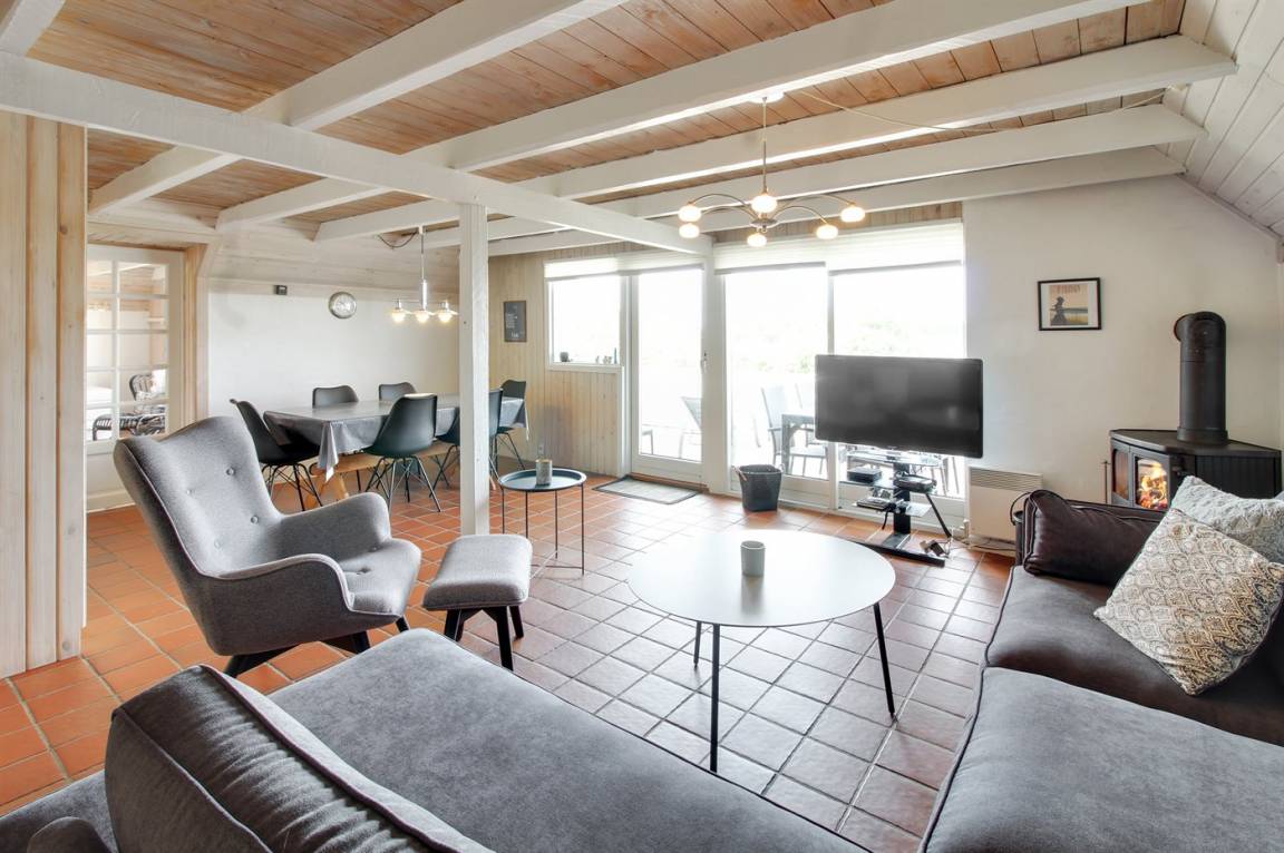 Ein absolut schönes und geräumiges Haus mit 1. Stock, wovon es Ausgang zum Balkon gibt. Hiervon haben Sie Meeresblick und eine schöne Aussicht zu einem See. Gemütliche Einrichtung mit allen Bequemlichkeiten. Herrliches Zimmer mit Sauna, Dusche und Eingang zu einer Toilette mit Waschbecken und einem Schlafzimmer. Extra Badezimmer mit Waschmaschine und Wäschtrockner. Im 1.Stock ist ein Aufenthaltsraum und ein Schlafzimmer mit 2 Betten. Sehr gute Terrassenverhältnisse nach Osten und Westen, eine hiervom ganz geschlossen. Überall Klinken mit Bodenwärme. Prachtvolle, ruhige Lage am Naturschutzgebiet. Ein gepflegtes und empfehlenswertes Haus, sogar mit gratis WI-FI.