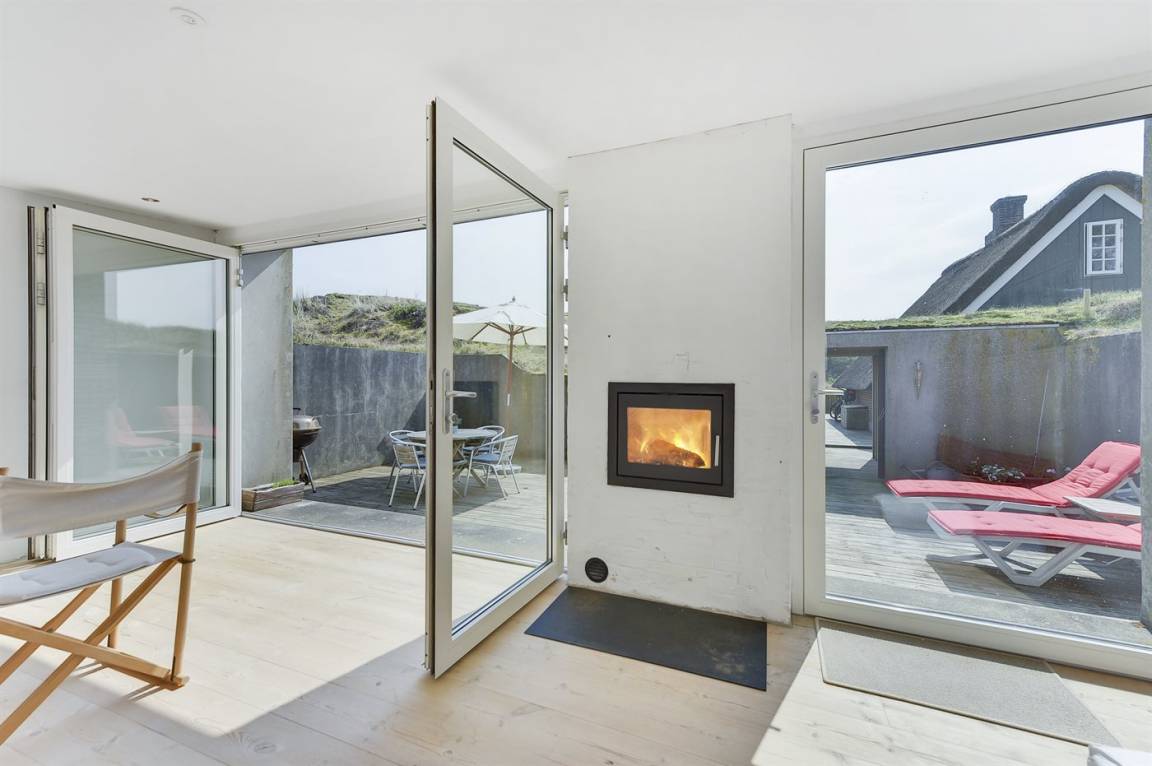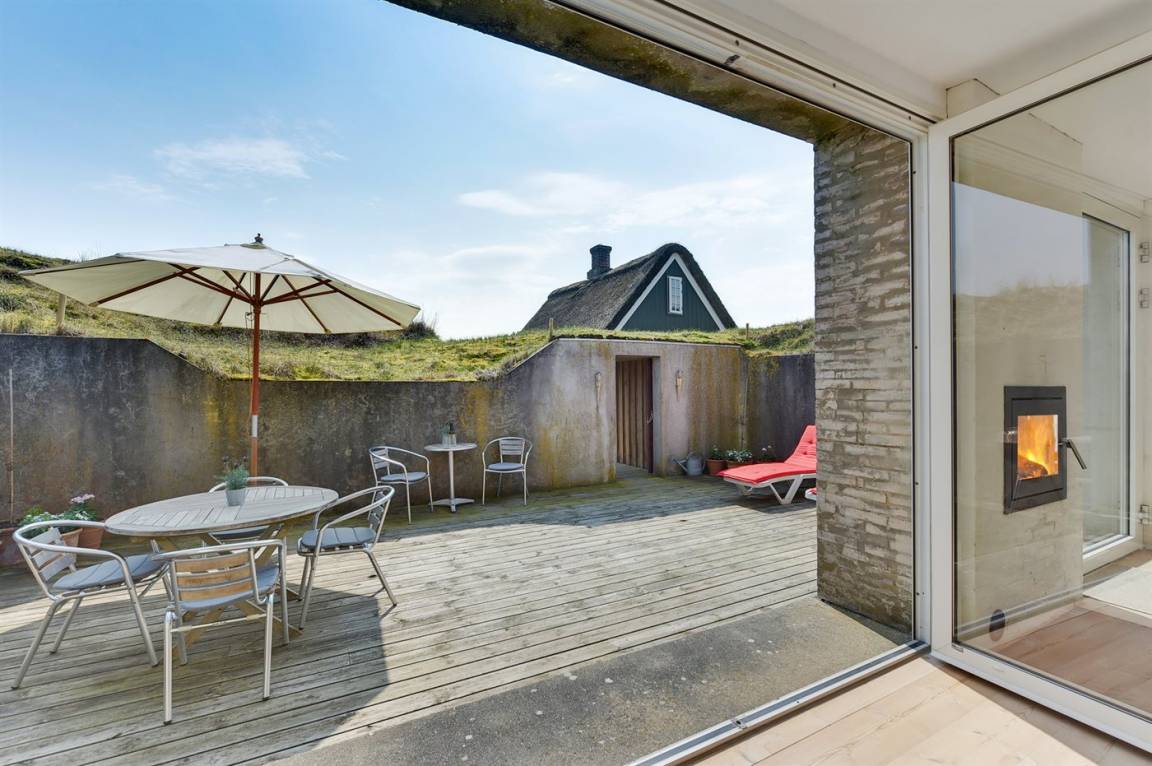 DraußenDie Ferienunterkunft liegt auf einem 1000 m² großen Naturgrundstück. Die Entfernung zum Meer beträgt 300 m. Die nächste Einkaufsmöglichkeit liegt 2000 m entfernt. Es steht ein 60 m² Terrassenareal zur Verfügung. Davon insgesamt 1 m² geschlossene Terrasse. Geräteraum. Außendusche mit heißem und kaltem Wasser. An Sommerabenden sorgt der Außenkamin für eine gemütliche Atmosphäre.