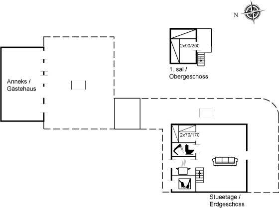 SchlafverhältnisseDie Schlafplätze verteilen sich auf 2 Schlafräume. 2 Schlafplätze in Einzelbetten. 2 Schlafplätze in einem Etagenbett. Ferner steht ein Kinderbett zur Verfügung.
