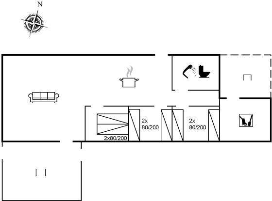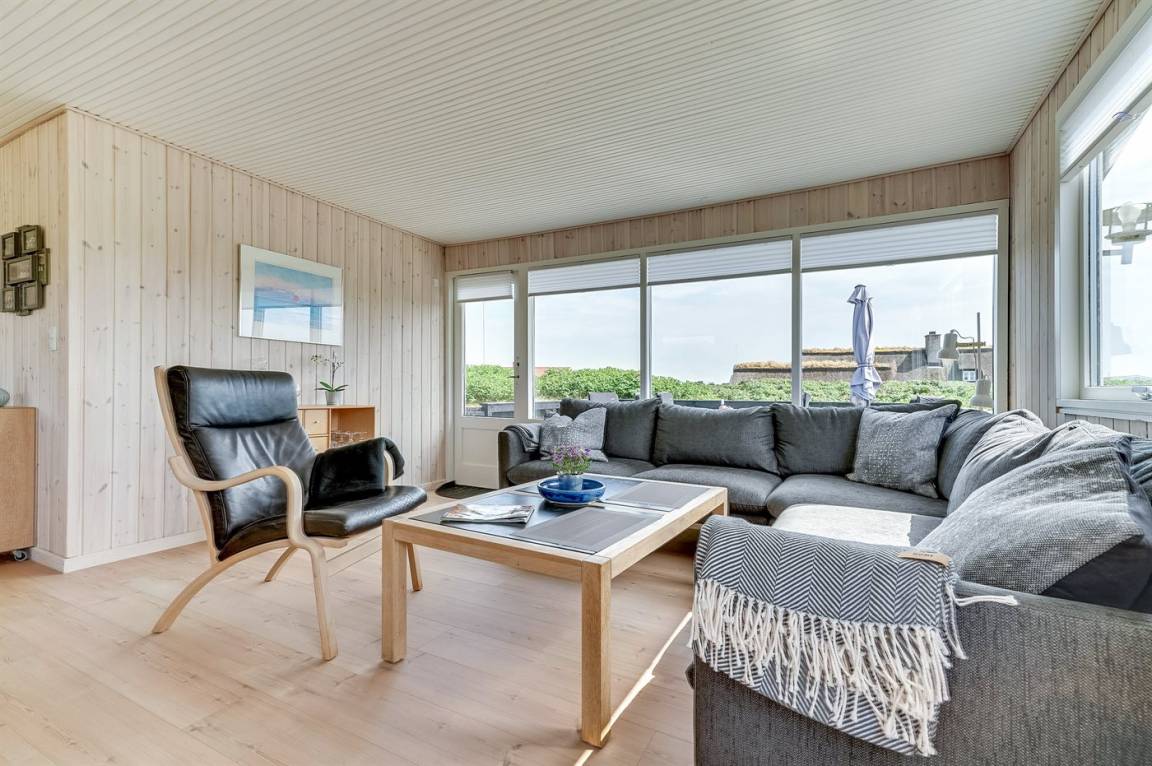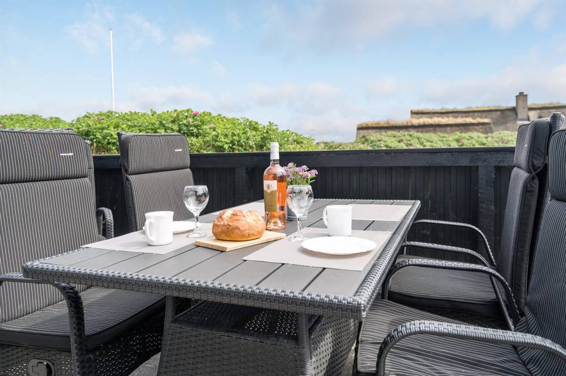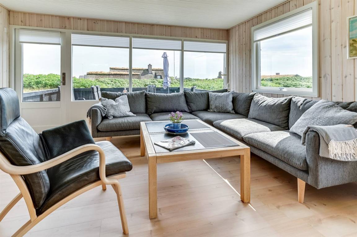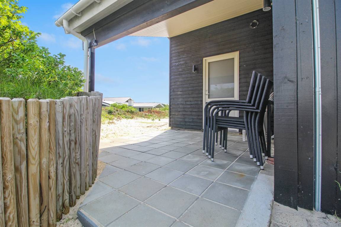 DraußenDie Ferienunterkunft liegt auf einem 1175 m² großen Dünengrundstück. Die Entfernung zum Meer beträgt 200 m. Die nächste Einkaufsmöglichkeit liegt 700 m entfernt. Es stehen 20 m² offene sowie 10 m² überdachte Terrasse zur Verfügung. Davon sind insgesamt 20 m² geschlossen. Geräteraum. Parkplatz auf dem Grundstück.