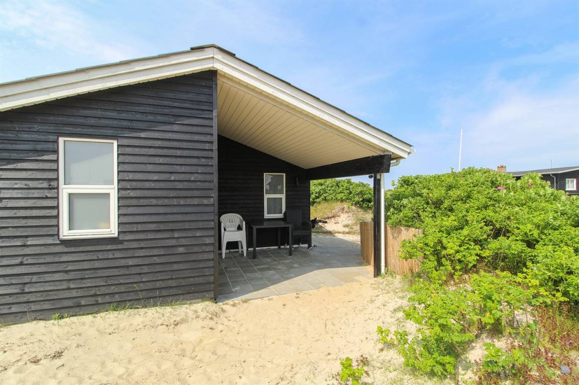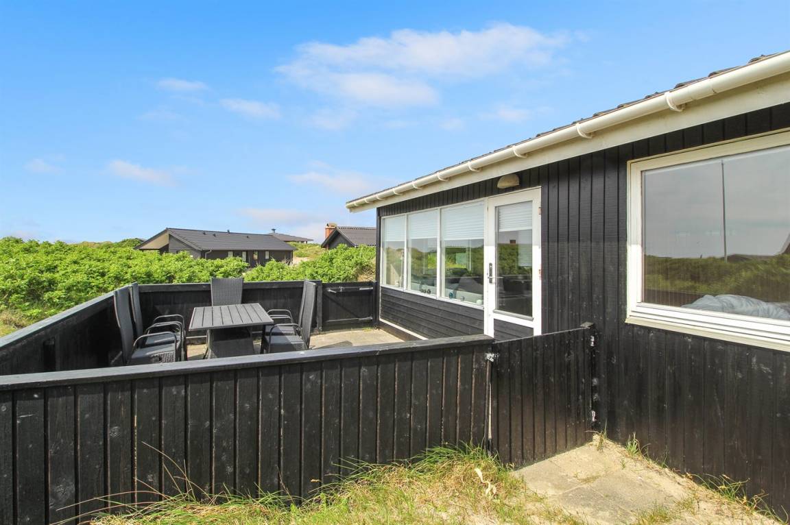 Gemütliches und gut ausgestattetes Ferienhaus auf Dünengrundstück dicht am Strand. Schöne, geschlossene Terrasse gegen Südwesten.