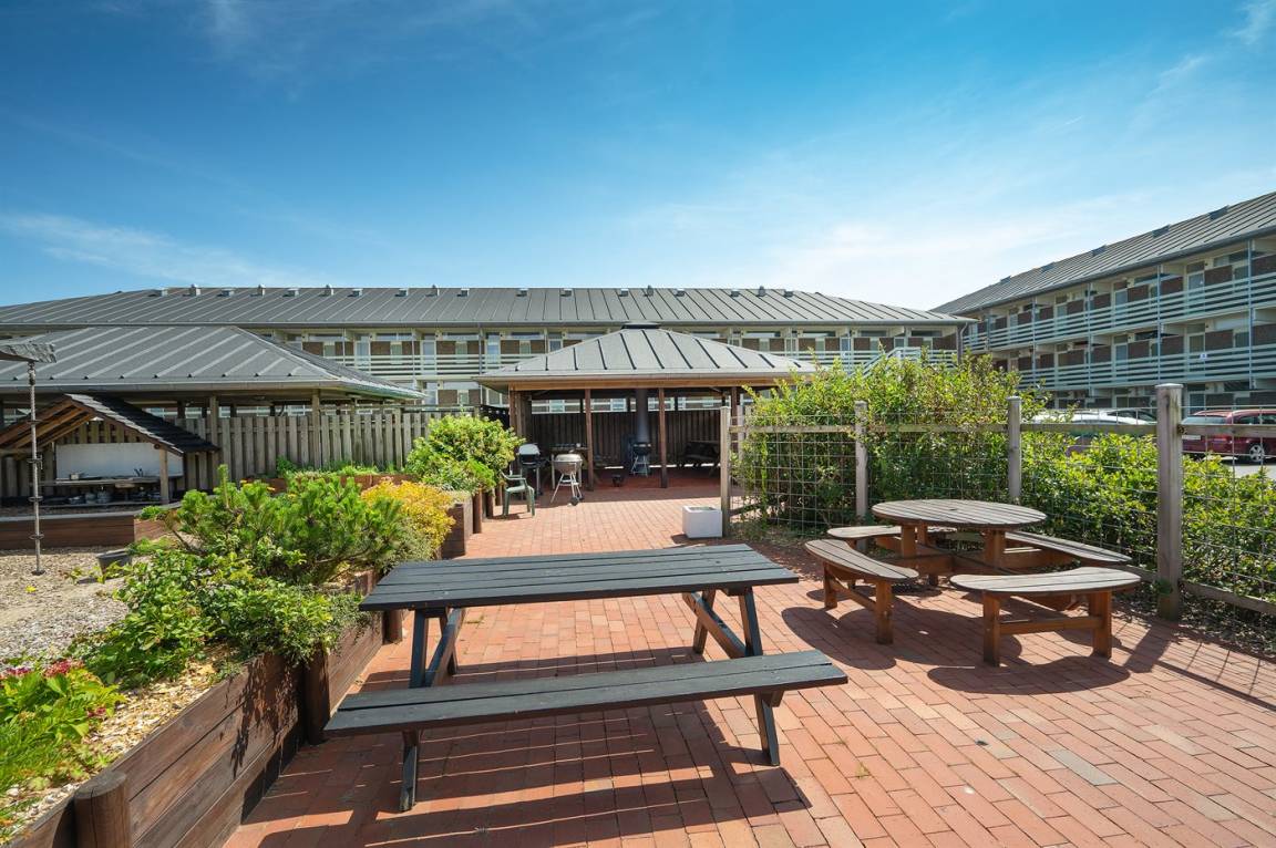 Gemeinschaftseinrichtungen: Beheizter Außenpool mit Solarenergie, Hallenbad sowie Kinderbecken, Sauna, Waschraum mit Trockner und Bügelmöglichkeit, kostenloser Internetzugang, Aktivitätsraum mit u. a. Tischtennis, Spielzimmer, Airhockey.