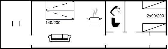 MultimedienIn der Ferienunterkunft gibt es 1 Fernseher mit Smart-TV. 1-3 dänische Fernsehsender. 1-3 schwedische Fernsehsender. 1-3 norwegische Fernsehsender. 1-3 deutsche Fernsehsender. Es steht kabellose Internetverbindung zur Verfügung.