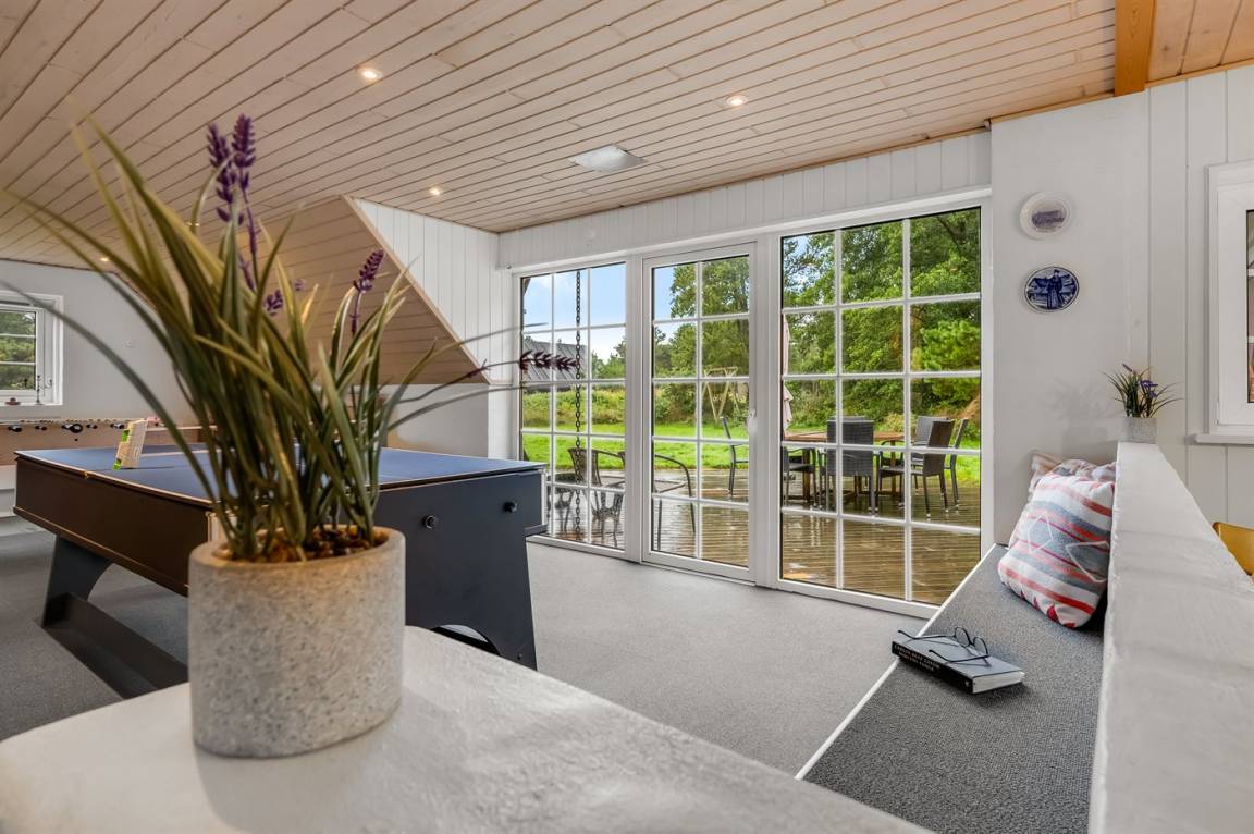 „The vacation at the holiday home: Die Küche war unserer Ansicht nach für die max. Personenzahl (10 Personen - wir waren zu siebt) etwas zu klein und nur bedingt ausreichend ausgestattet. (Vielleicht sind wir aber auch von der Ausstattung anderer Ferienhäuser, die wir auf Fanö schon hatten, einfach etwas verwöhnt.) Es fehlte an großen Schüsseln/Sieben, Besteck und Gläsern – die Spülmaschine lief daher fast im Dauerbetrieb. Das Cerankochfeld zeigte bereits bei unserer Ankunft einen großen Riss, funktionierte aber. Der Backofen hatte seine besten Zeiten auch hinter sich. Für einen Fernseher in einem der Zimmer fehlte die Fernbedienung. Trockner und Waschmaschine waren schon etwas betagt, erfüllten aber ihren Zweck. Eine Wäscheleine war nicht vorhanden (wurde uns aber vom Team Sol og Strand kurzfristig besorgt, vielen Dank dafür!). Im Haus fand sich später eine Wäschespinne. Die Sonnenliegen, zum Teil defekt, aber noch zu gebrauchen, hätten eine Grundreinigung verdient. Polster – auch für die Sitzmöbel auf der Terrasse – gab es keine. Der „Grill" war nicht mehr zu gebrauchen, der Sonnenschirm leider defekt. Nicht so schön sind die Ameisen, die sich vor allem im rechten Badezimmer mit angrenzender/m Sauna/Whirlpool eingenistet haben. Es ist zu befürchten, dass sich die Ameisen bereits in der Sauna breit gemacht haben. Der Whirlpool fand bei den Kids großen Anklang, warum dieser allerdings in einem Raum installiert wurde ohne Fenster/Lüftungsmöglichkeiten, dafür mit schicker Fensterfront zur „Spielecke", erschließt sich uns nicht. Dem Besitzer sei ans Herz gelegt, dringend etwas gegen die Ameisen im Badezimmer zu unternehmen, dem Haus mal eine Renovierung zu gönnen und in eine etwas bessere Ausstattung der Küche und in neue Gartenmöbel zu investieren. Unserer Meinung nach leidet das Haus, das ansonsten und vorallem für Kinder viel zu bieten hat, unter diesem unbefriedigendem Gesamteindruck.“