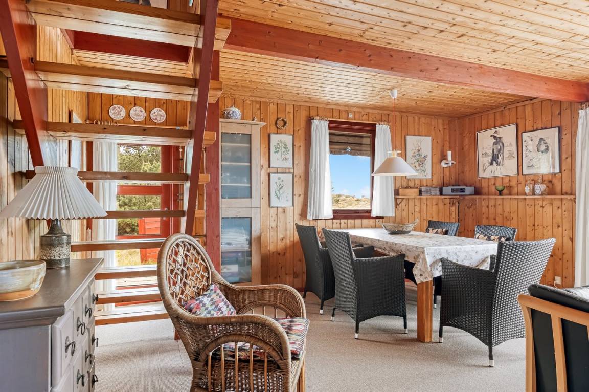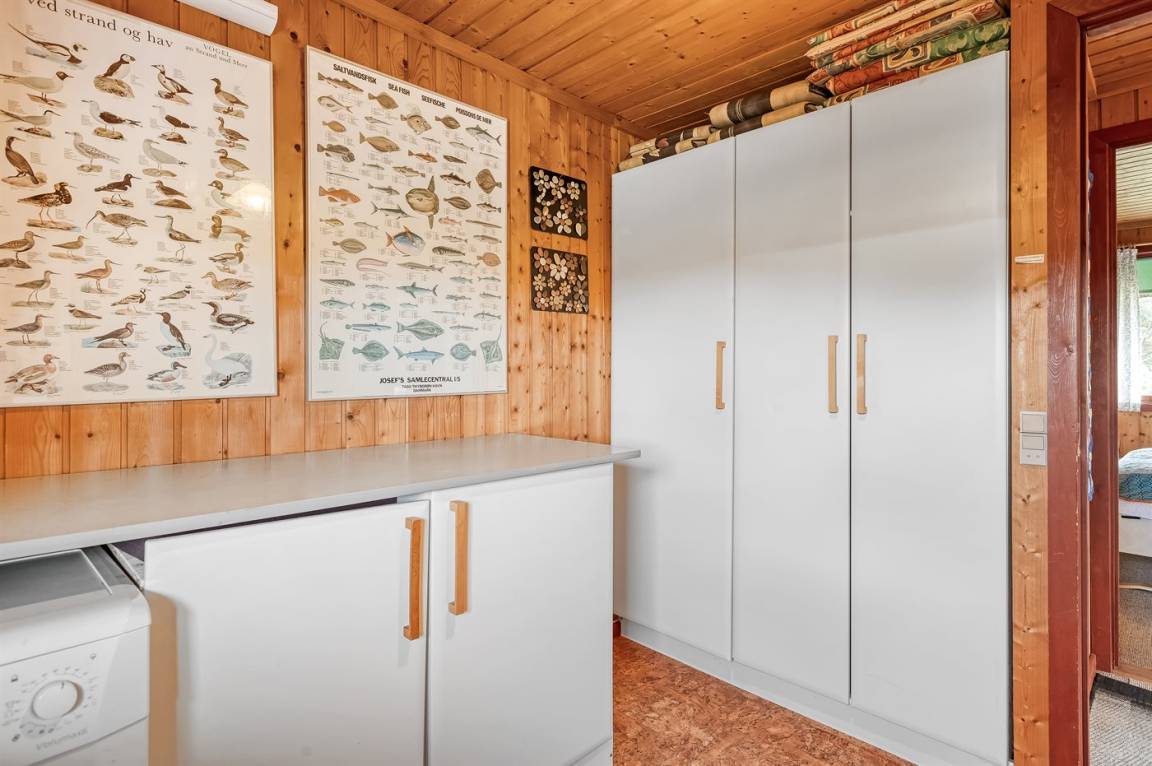 Ein geräumiges und gediegendes, zweistöckiges Ferienhaus in sehr schöner Lage am Naturschutzgebiet, wo man stundenlang spazieren und das reiche Tierleben genießen kann. Das Haus ist gepflegt und gemütlich eingerichtet. Im 1. Stock befinden sich Wohnzimmer mit Aussicht, sowie zwei Schlafzimmer. Insgesamt befinden sich 3 Schlafräume, hiervon 2 mit Doppelbetten. Das Haus hat eine Babybadewanne und eine Waschmaschine für die Kinderfamilien. Es gibt ein seperater Gefrierschrank.