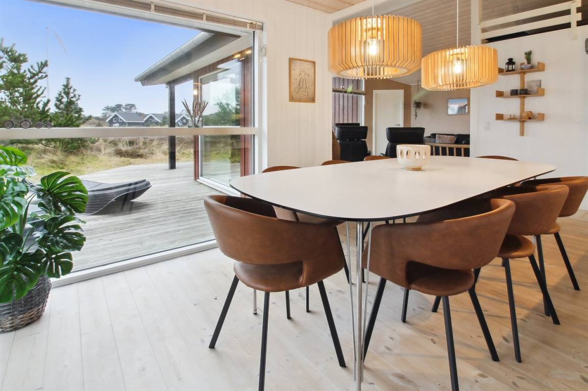Das Ferienhaus eignet sich für 8 Personen sowie 1 Kleinkind bis zu 3 Jahren. 2 der Schlafplätze eignen sich jedoch nur für größere Kinder (4-11 Jahre). Die Ferienunterkunft hat eine Wohnfläche von 102 m² und wurde 2012 gebaut. Haustiere dürfen nicht mitgebracht werden. Die Ferienunterkunft ist mit energiesparender Wärmepumpe ausgestattet. Die Ferienunterkunft ist mit Waschmaschine ausgestattet. Wäschetrockner. Tiefkühlmöglichkeit mit 76 Liter Nutzinhalt. Es gibt außerdem einen Kaminofen. Für die jüngsten Feriengäste ist 1 Kinderhochstuhl vorhanden.