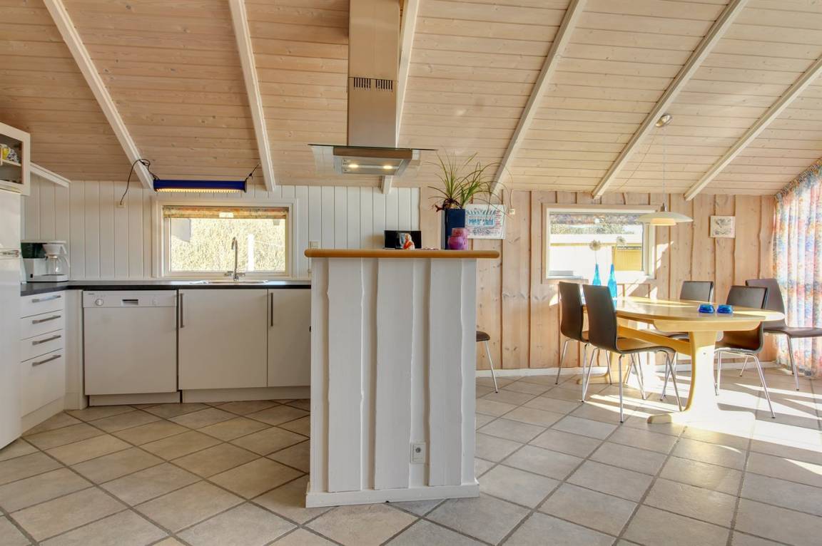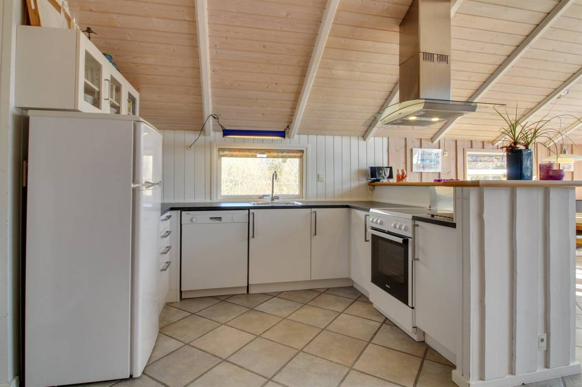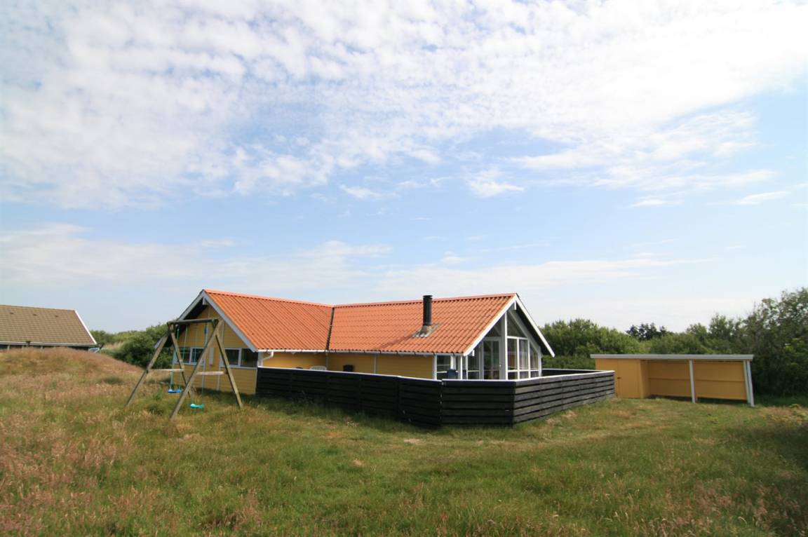Im Naturgebiet und nicht weit vom Strand entfernt, befindet sich dieses Haus mit Platz für 6 Personen. Vom Haus kann man auf einem kleinen Weg zu Fuss zum Strand gehen. Badezimmer mit Whirlpool und Sauna. Grosse Fenster im Wohnzimmer. Die Terrasse ist ganz geschlossen und hier gibt es auch eine Sandkiste. Ausserdem Schaukel, Kinderbett und Kinderstuhl für die Kleinen. Das Haus verfügt über 300 L. Warmwasserboiler, was bedeutet, dass der Whirlpool mit warmem Wasser gefüllt werden kann.