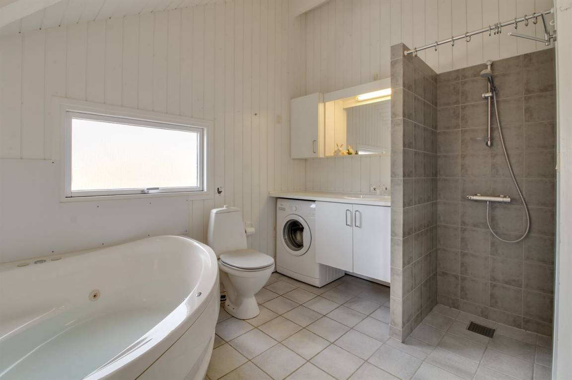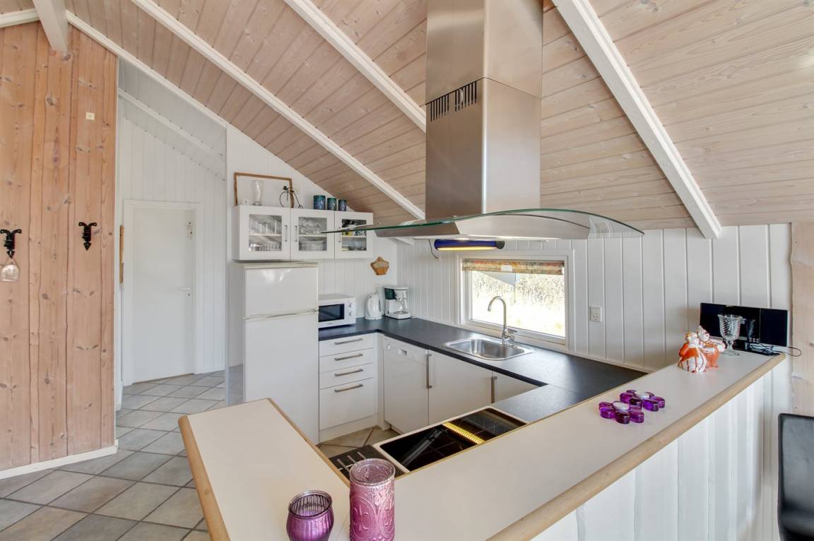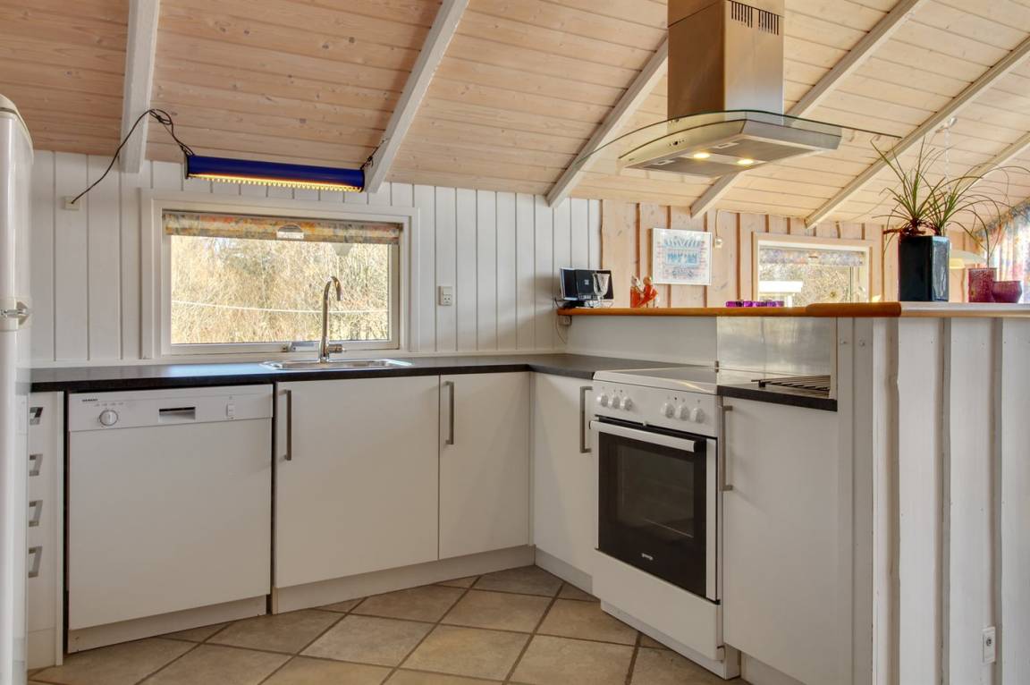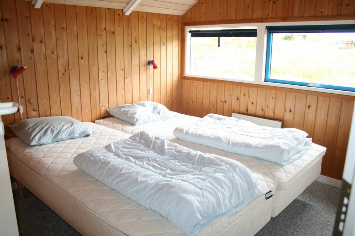 Im Naturgebiet und nicht weit vom Strand entfernt, befindet sich dieses Haus mit Platz für 6 Personen. Vom Haus kann man auf einem kleinen Weg zu Fuss zum Strand gehen. Badezimmer mit Whirlpool und Sauna. Grosse Fenster im Wohnzimmer. Die Terrasse ist ganz geschlossen und hier gibt es auch eine Sandkiste. Ausserdem Schaukel, Kinderbett und Kinderstuhl für die Kleinen. Das Haus verfügt über 300 L. Warmwasserboiler, was bedeutet, dass der Whirlpool mit warmem Wasser gefüllt werden kann.