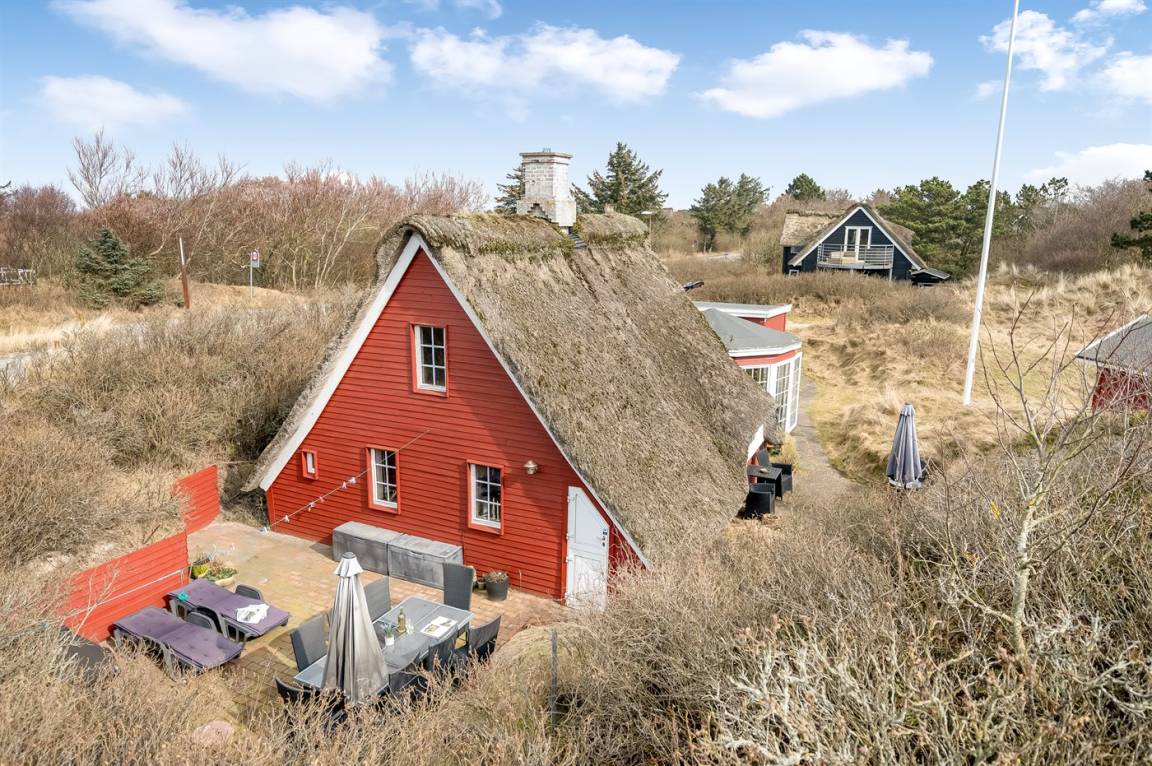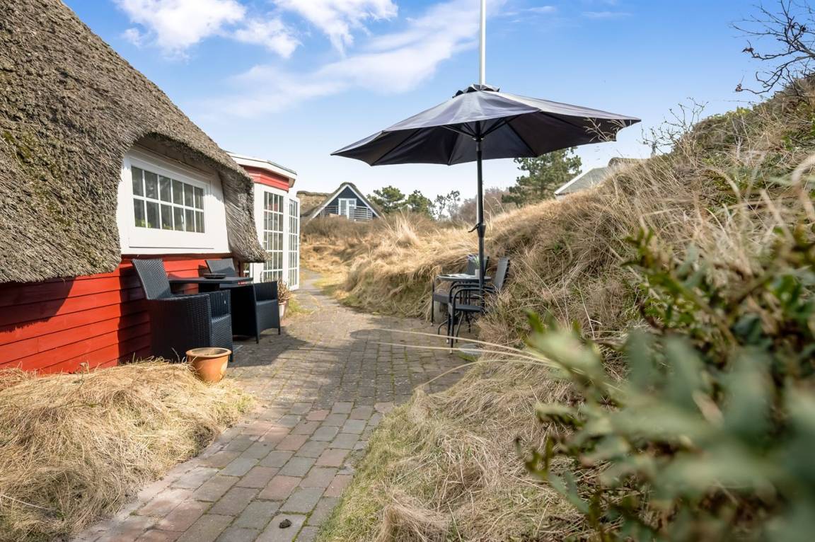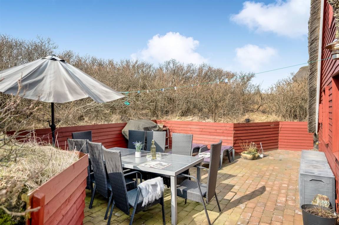 DraußenDie Ferienunterkunft liegt auf einem 1084 m² großen Dünengrundstück. Die Entfernung zum Meer beträgt 500 m. Die nächste Einkaufsmöglichkeit liegt 500 m entfernt. In einem Abstand von 25 m gibt es einen Golfplatz. Es steht ein offenes Terrassenareal zur Verfügung. Es steht ein Grill zur Verfügung. Parkplatz auf dem Grundstück.