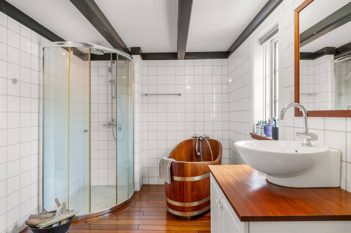WC und BadEs gibt 1 Badezimmer mit Duschnische sowie Badewanne und 1 Badezimmer mit Duschnische.