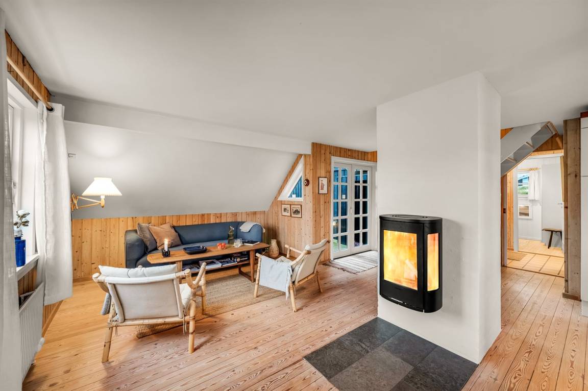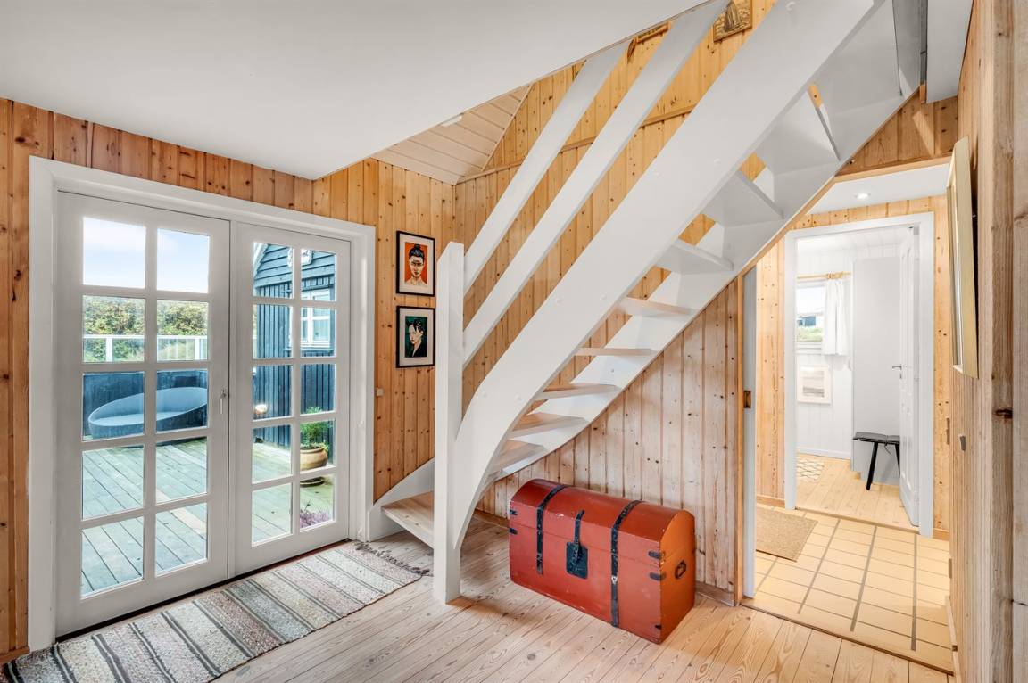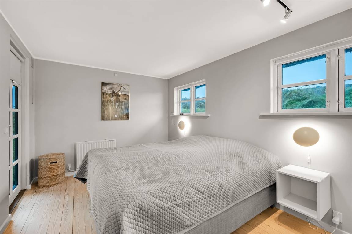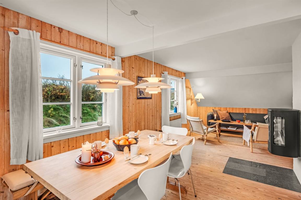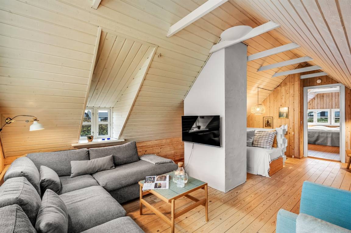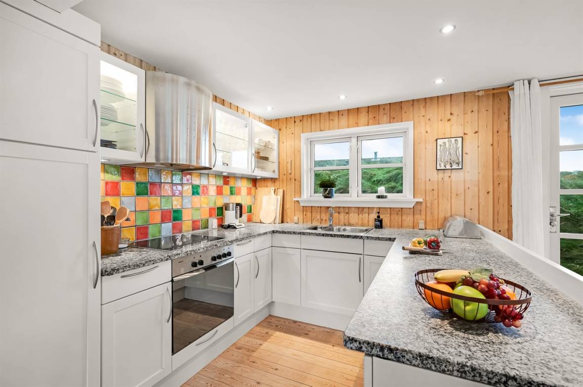 Dicht am Strand liegt dieses reetgedeckte und sehr geräumige Ferienhaus auf einem leicht hügeligen Dünengrundstück. Auf der großen Terrassenfläche, die das Haus umgibt, können Sie den ganzen Tag hindurch die Sonne genießen. Das Haus ist persönlich und geschmackvoll eingerichtet und eignet sich ganz vorzüglich für eine Familie mit Kindern. Zu dem Zeitpunkt, wo das Ferienhaus gebaut wurde, konnte man das Meer vom Wohnzimmer aus sehen. Das Dünengebiet und die Dünen auf Fanø sind jedoch unter konstater Wandlung und verändern sich Jahr für Jahr. Die Dünen vor dem Haus verhindern daher den Meeresblick vom Wohnzimmer im Erdgeschoss – vom Fernsehzimmer im Obergeschoss ist das Meer jedoch weiterhin zu ahnen. Beim Haus gibt es zwei Parkplätze.