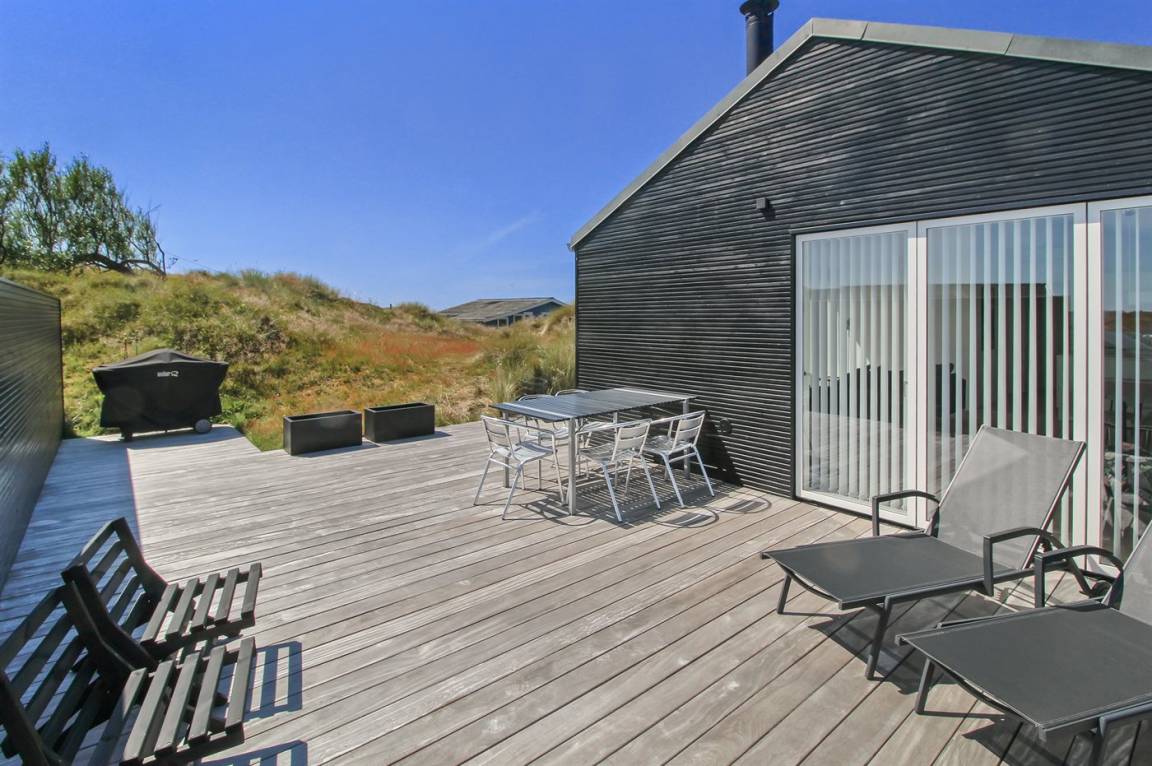 Dieses Ferienhaus lässt Träume wahr werden. Das Haus liegt am Ende einer Sackgasse, umgeben von Dünen, und verfügt über schöne, abgeschirmte Terrassen sowie eine tolle Aussicht auf die Natur Fanøs. Beim Bau des Hauses kamen beste Materialien zum Einsatz – ideale Voraussetzung für einen rundum gelungenen Urlaub.