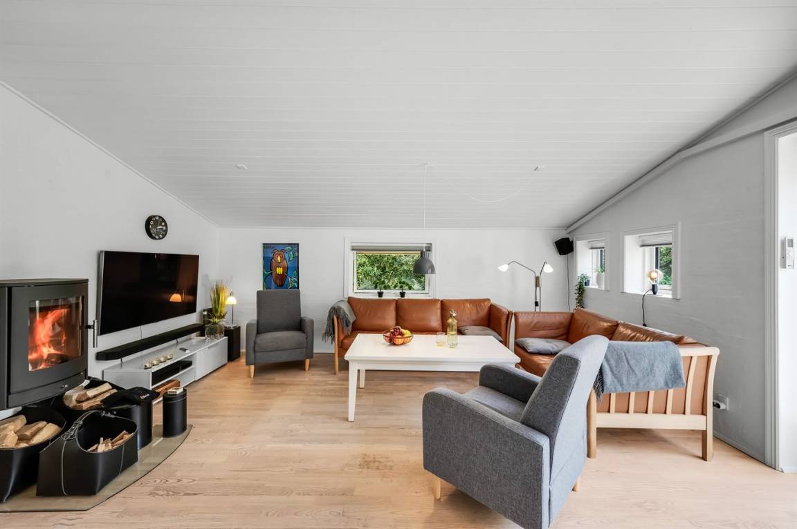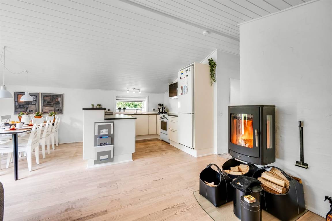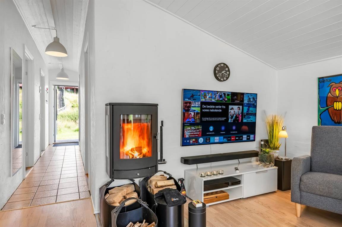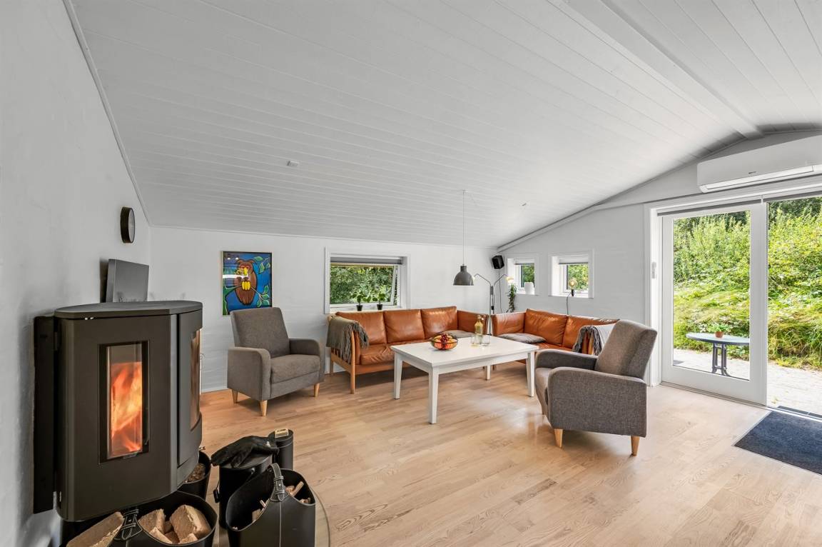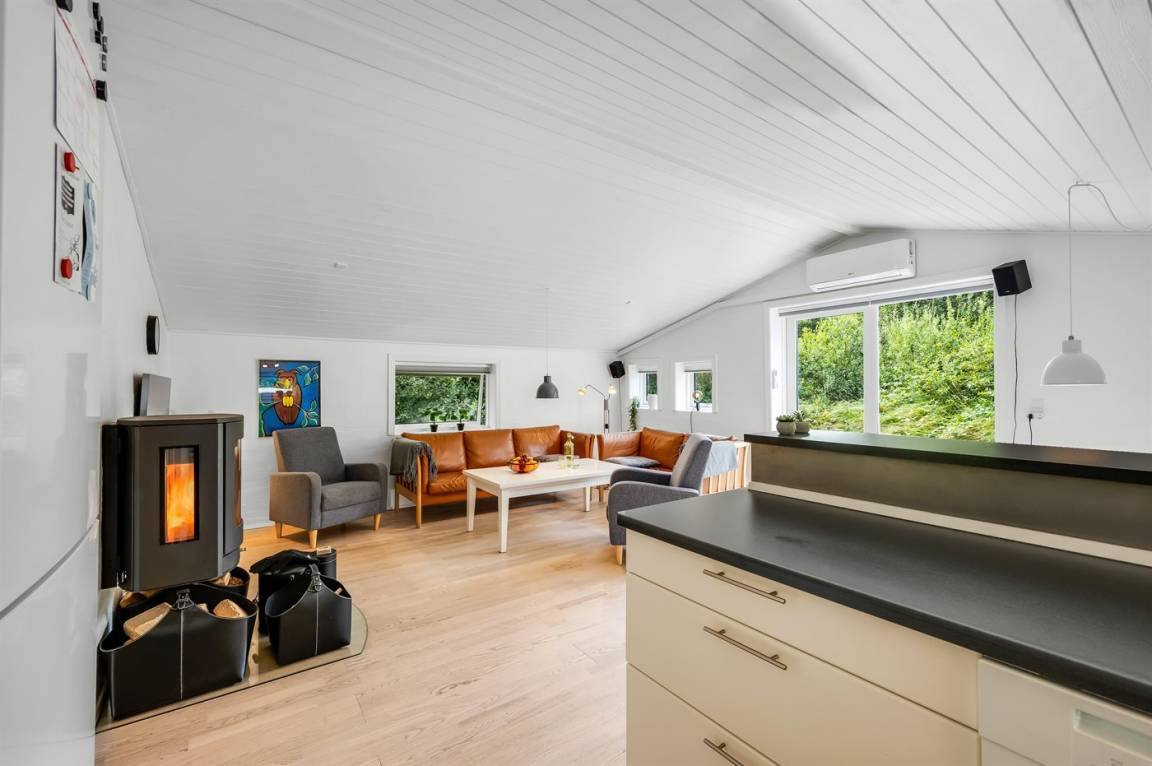 Schönes und gepflegtes Ferienhaus mit einer guten Lage. Das Haus wurde 2022 komplett renoviert und mit neuester Ausstattung versehen, darunter ein neuer Holzofen, eine Wärmepumpe sowie Multimedia. Es gibt ein Heimkino mit 55-Zoll 4K Samsung Smart-TV und Dolby Surround, bereit für Blockbuster, Netflix usw. Eine Bose-Bluetooth-Lautsprecher für Smartphone und Laptop sowie 1000 Mbit, um aus dem Ferienhaus zu arbeiten. Außerdem gibt es herrliche Terrassenbedingungen mit Sonnenliegen, Tisch und Stühlen sowie einem Grill.
