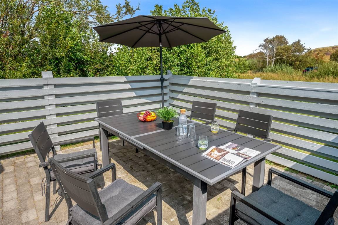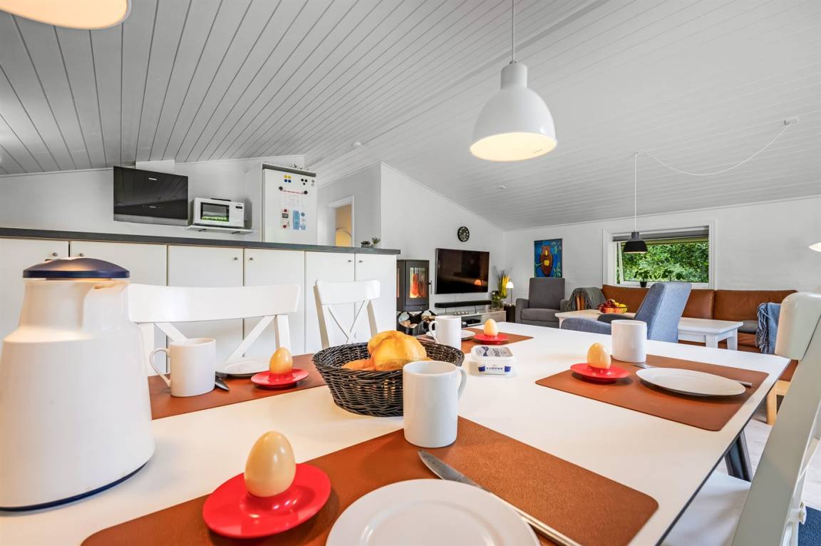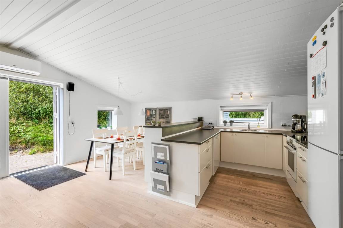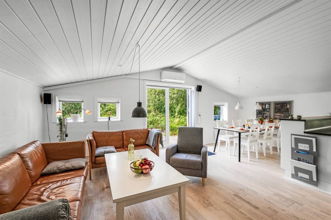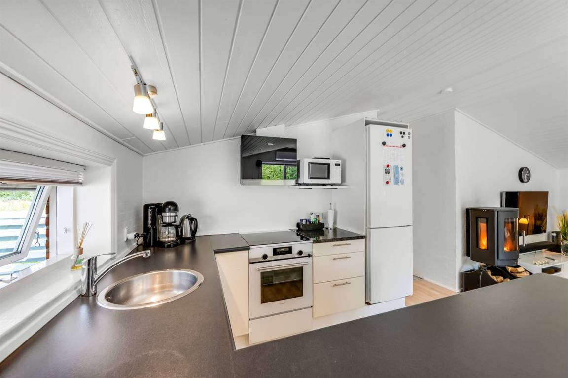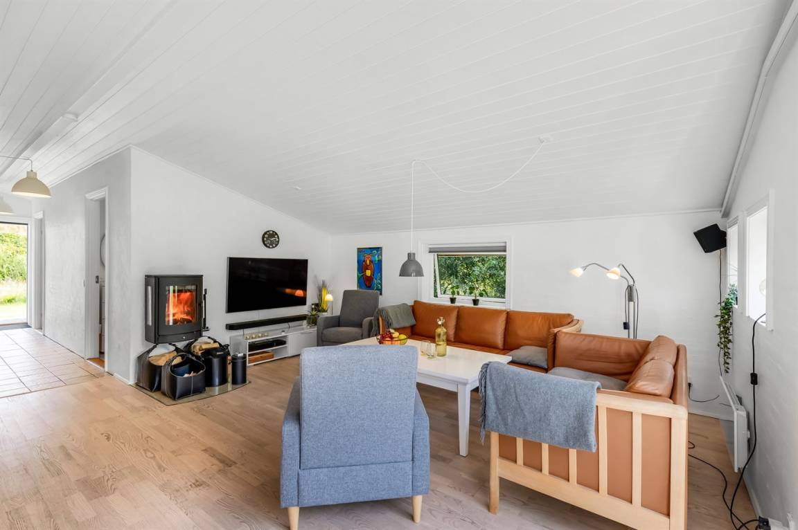 Schönes und gepflegtes Ferienhaus mit einer guten Lage. Das Haus wurde 2022 komplett renoviert und mit neuester Ausstattung versehen, darunter ein neuer Holzofen, eine Wärmepumpe sowie Multimedia. Es gibt ein Heimkino mit 55-Zoll 4K Samsung Smart-TV und Dolby Surround, bereit für Blockbuster, Netflix usw. Eine Bose-Bluetooth-Lautsprecher für Smartphone und Laptop sowie 1000 Mbit, um aus dem Ferienhaus zu arbeiten. Außerdem gibt es herrliche Terrassenbedingungen mit Sonnenliegen, Tisch und Stühlen sowie einem Grill.