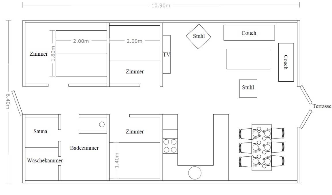 82 m² Ferienhaus ∙ 3 Schlafzimmer ∙ 5 Gäste