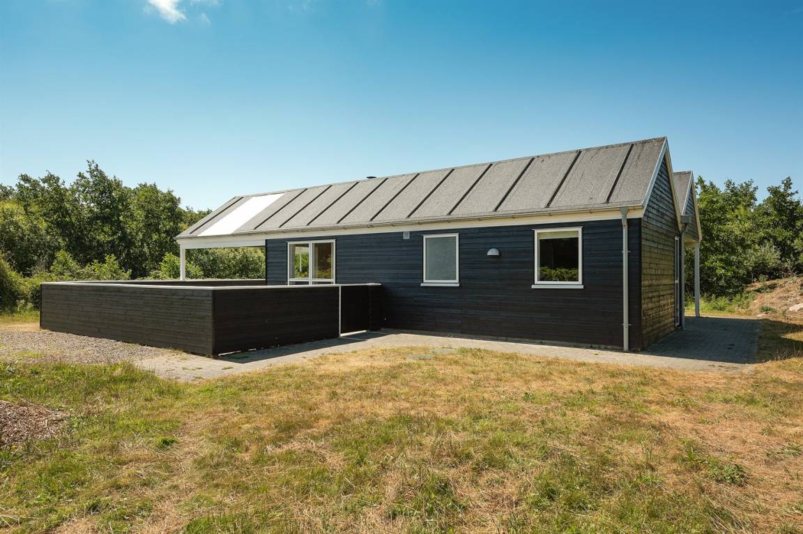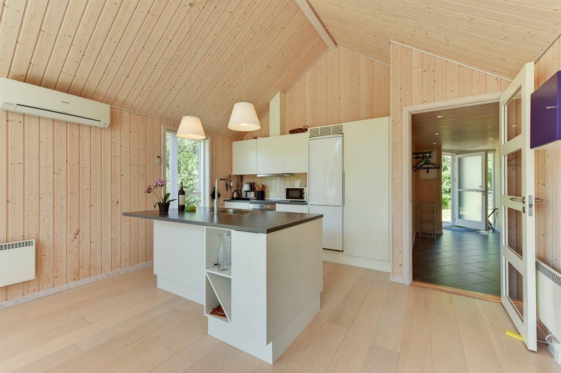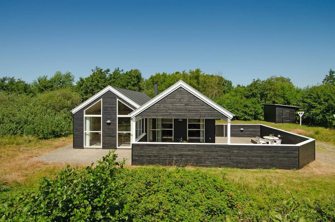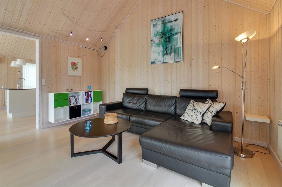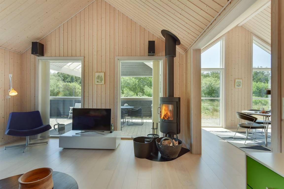 Dieses schöne Ferienhaus ist aus guten Materialien gebaut und mit Sinn fürs Detail eingerichtet. Zum Haus gehört eine schöne, geschlossene Terrasse mit Gartenmöbeln – hier kann man es sich den Sommer hindurch gemütlich machen. Übrigens: Die 2 Schlafplätze auf Matratzen befinden sich in einem offenen Obergeschoss - in dem einen Schlafzimmer.
