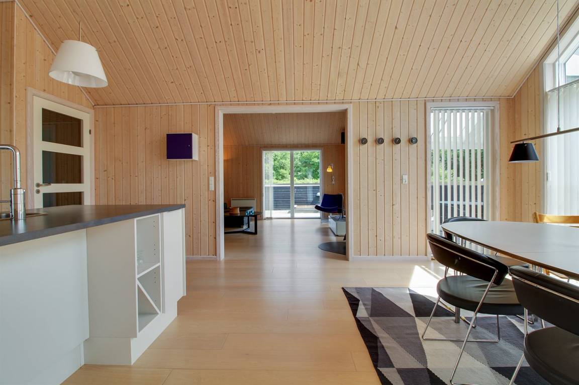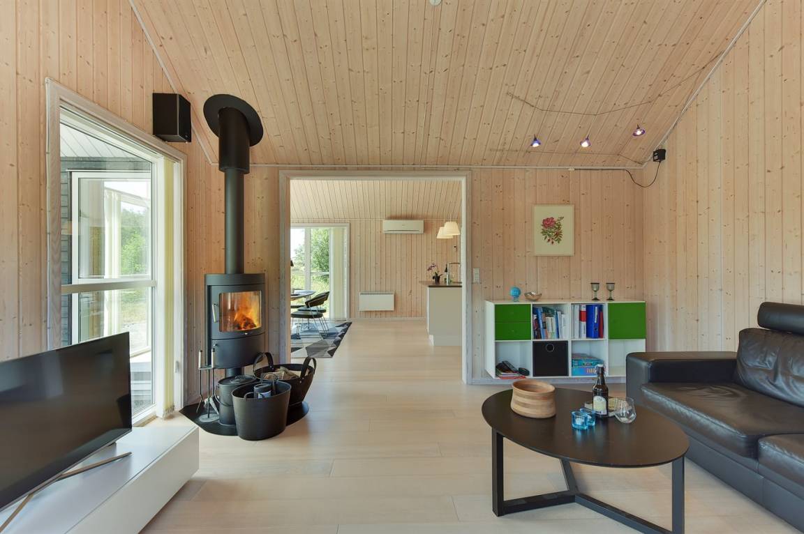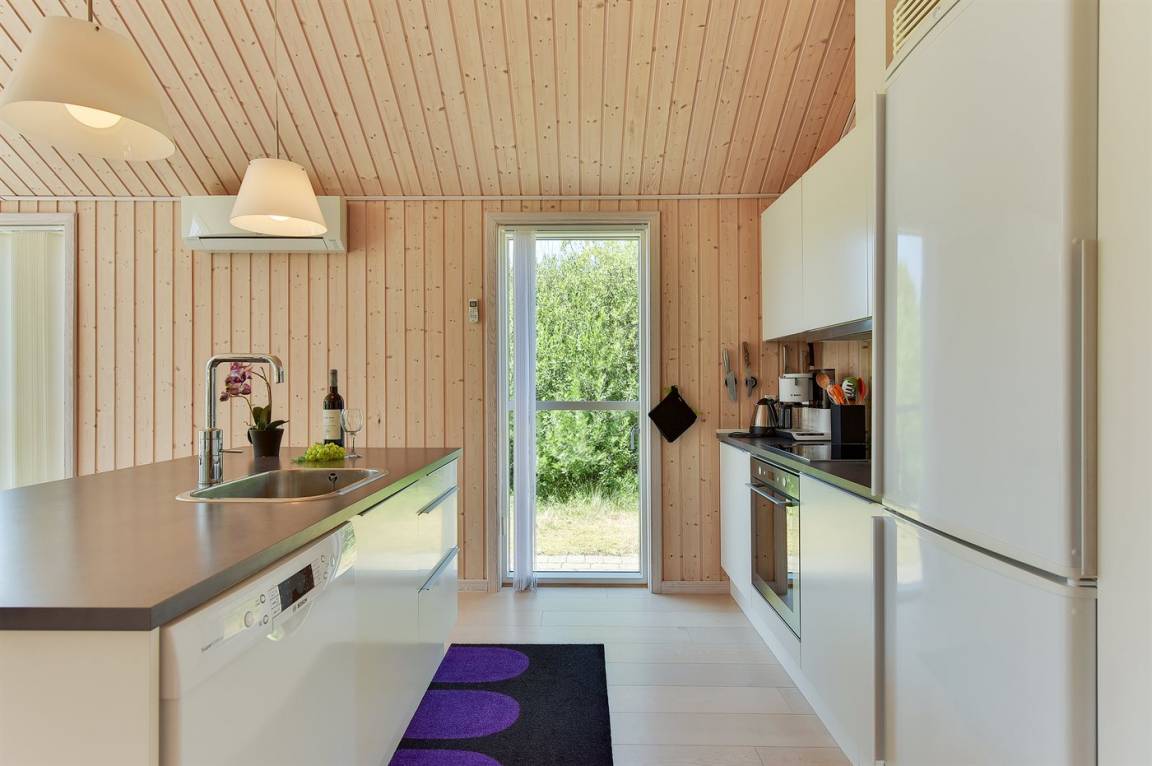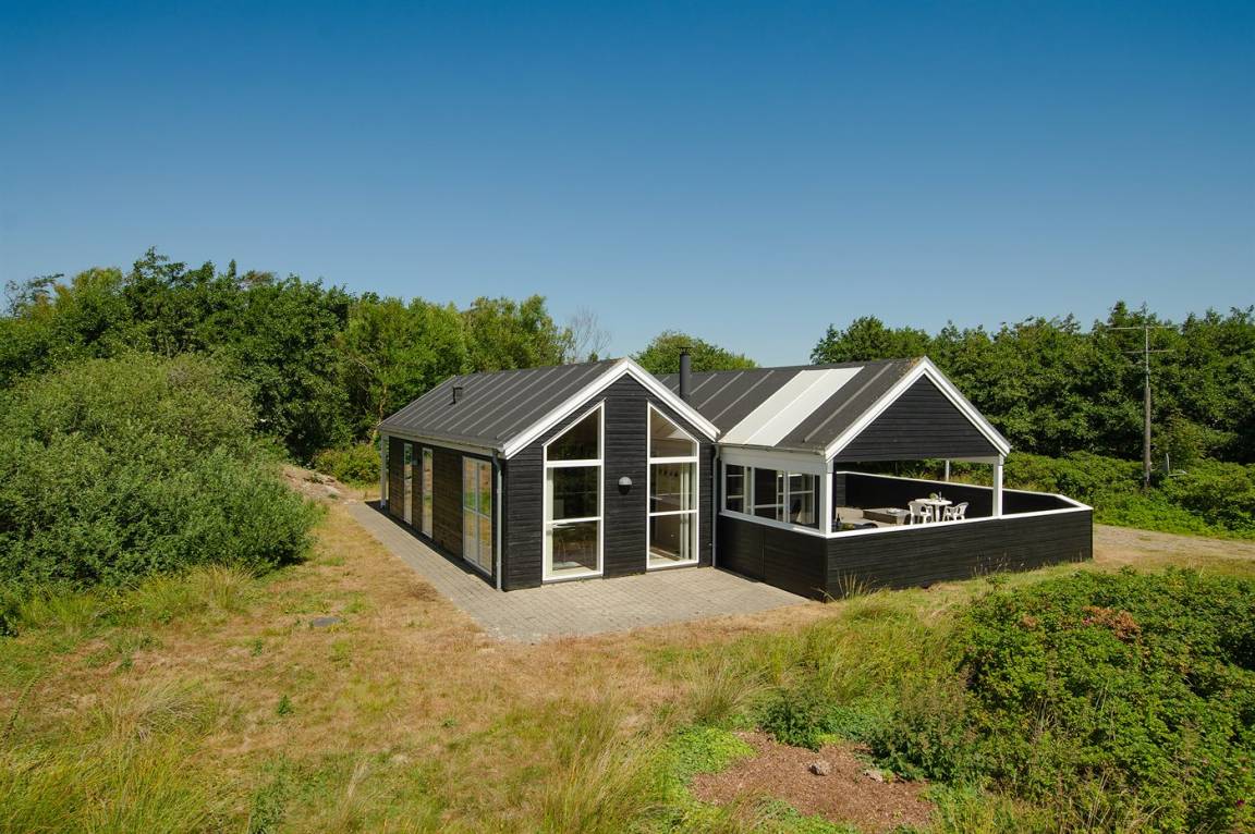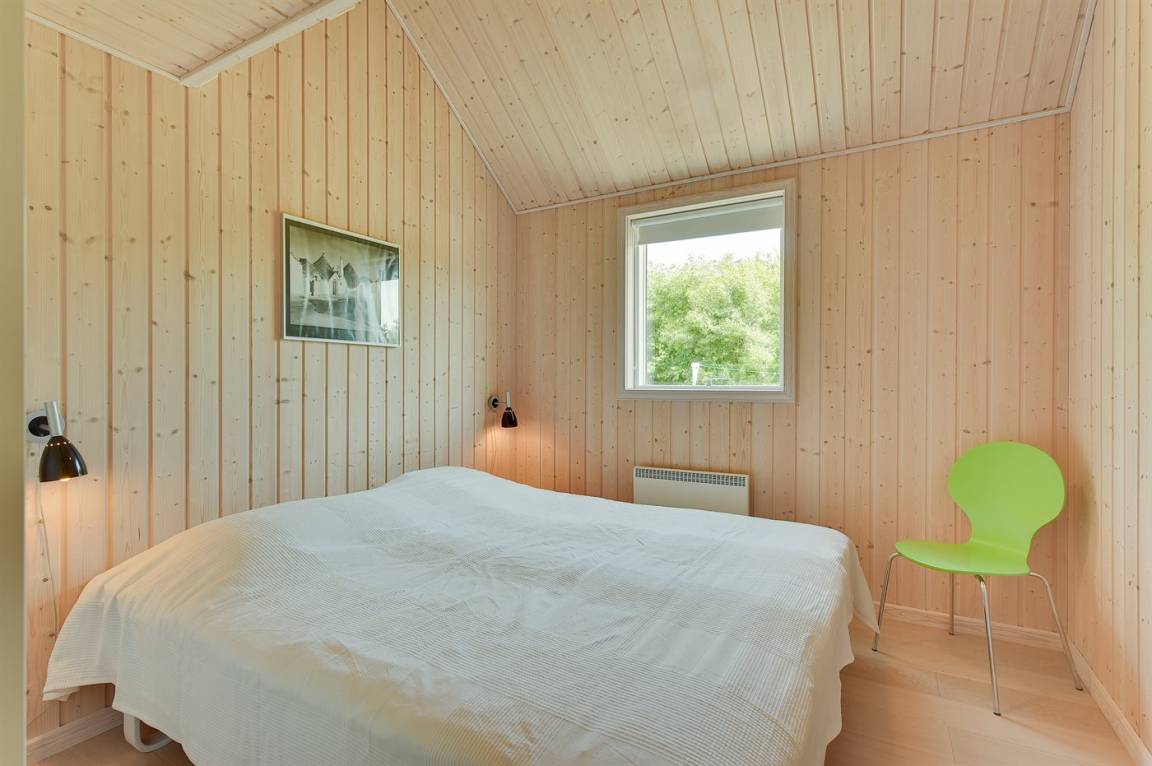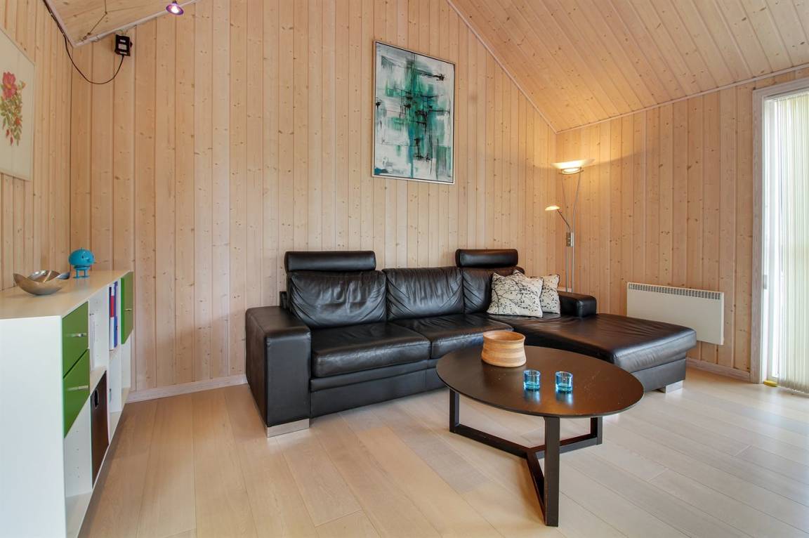 Dieses schöne Ferienhaus ist aus guten Materialien gebaut und mit Sinn fürs Detail eingerichtet. Zum Haus gehört eine schöne, geschlossene Terrasse mit Gartenmöbeln – hier kann man es sich den Sommer hindurch gemütlich machen. Übrigens: Die 2 Schlafplätze auf Matratzen befinden sich in einem offenen Obergeschoss - in dem einen Schlafzimmer.