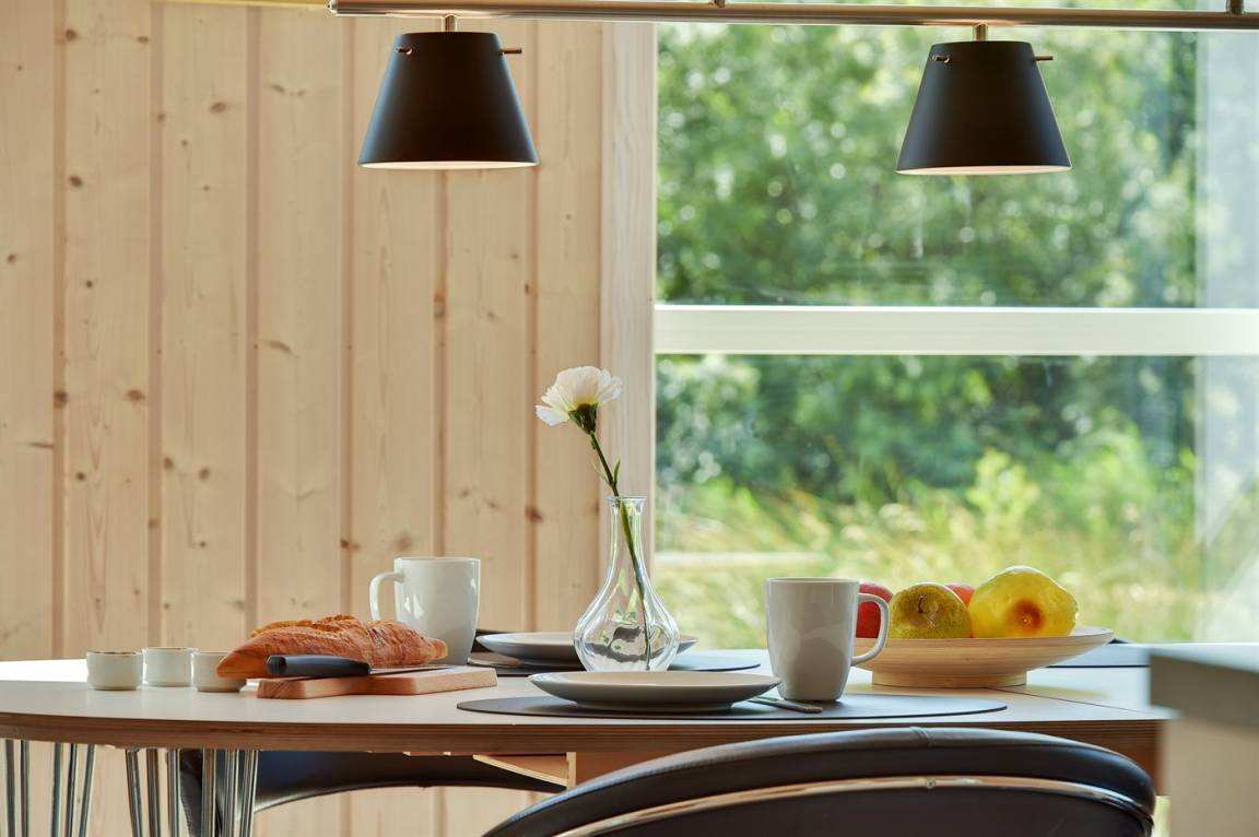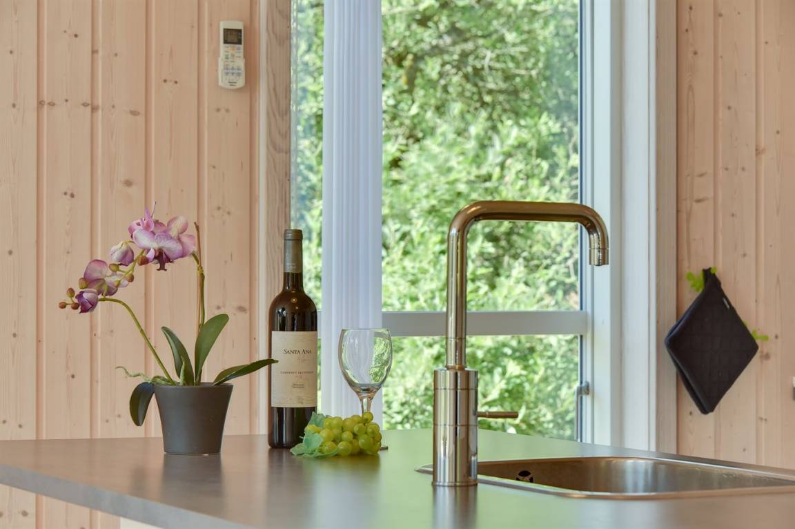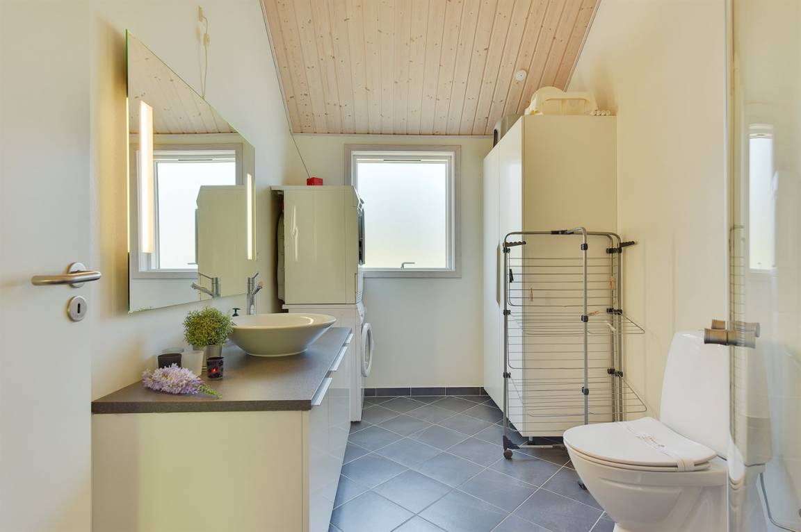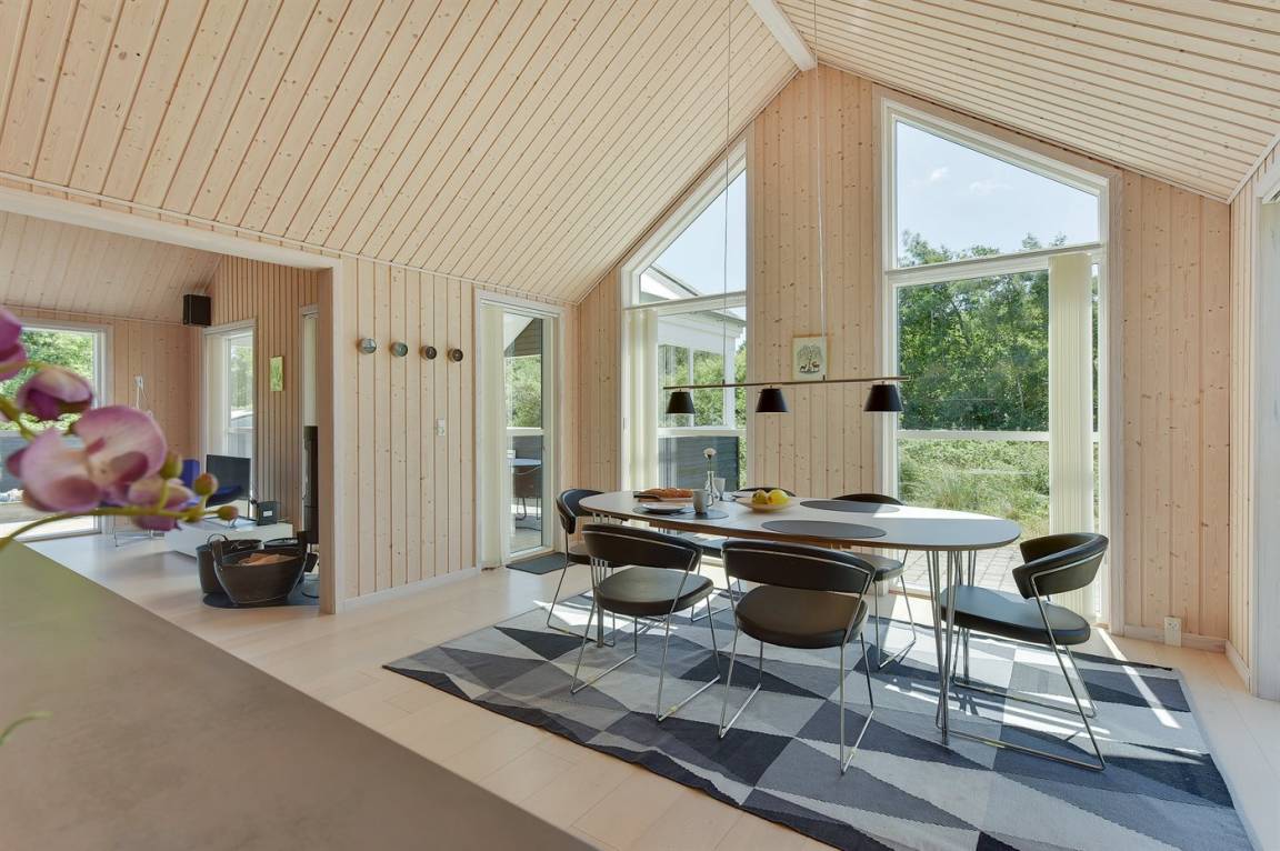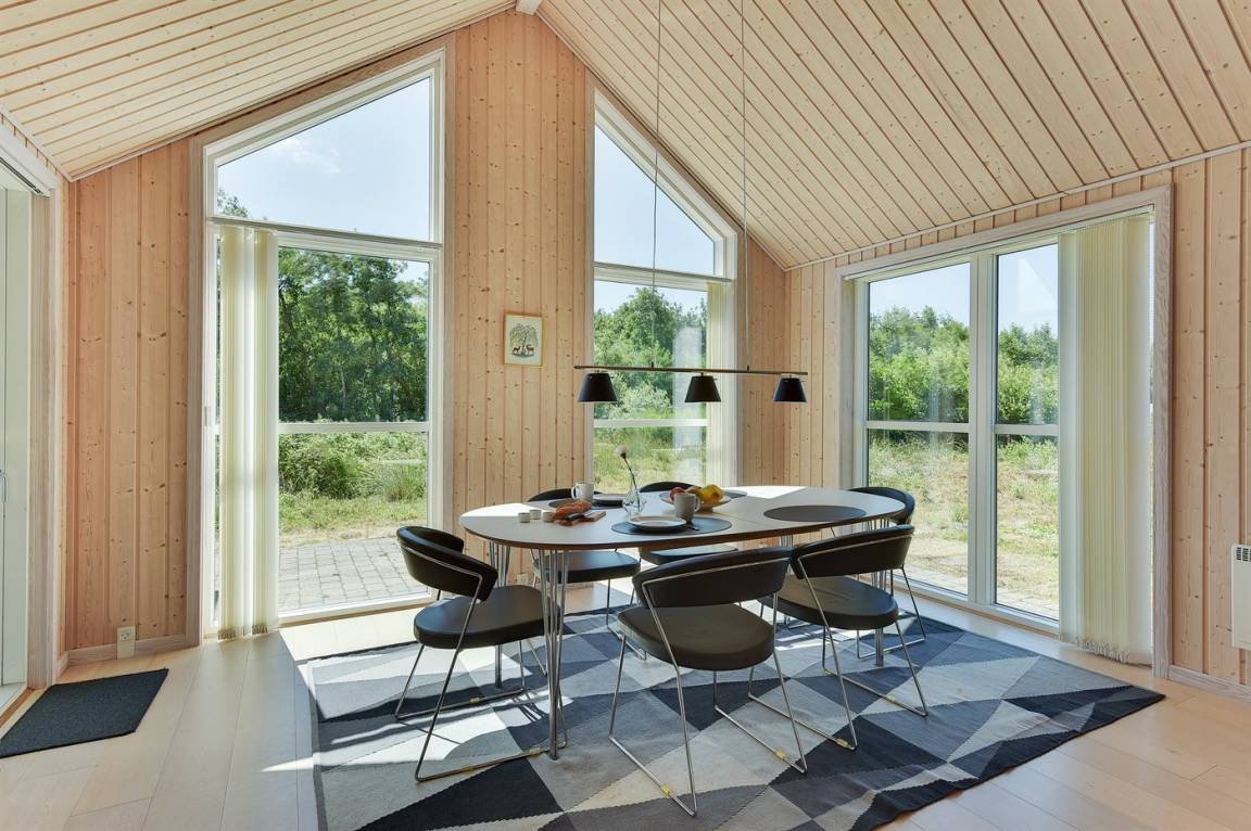 Dieses schöne Ferienhaus ist aus guten Materialien gebaut und mit Sinn fürs Detail eingerichtet. Zum Haus gehört eine schöne, geschlossene Terrasse mit Gartenmöbeln – hier kann man es sich den Sommer hindurch gemütlich machen. Übrigens: Die 2 Schlafplätze auf Matratzen befinden sich in einem offenen Obergeschoss - in dem einen Schlafzimmer.