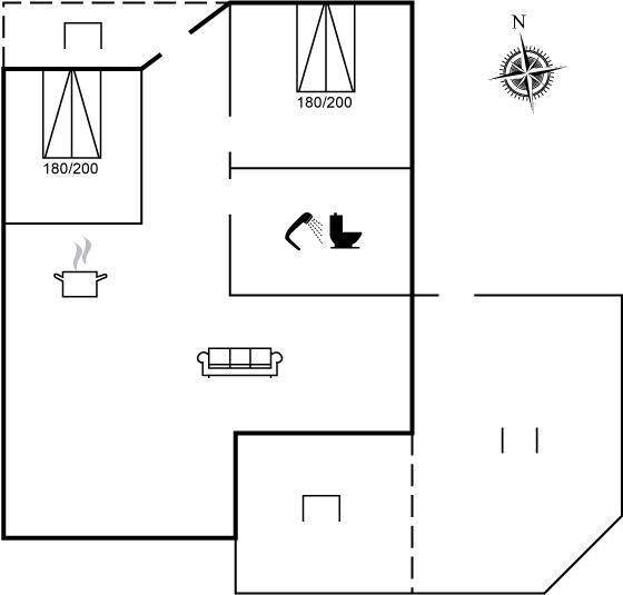 SchlafverhältnisseDie Schlafplätze verteilen sich auf 2 Schlafräume. 4 Schlafplätze in Doppelbetten. 2 Schlafplätze auf Matratzen. 2 von diesen Schlafplätzen befinden sich im offenen Obergeschoss.