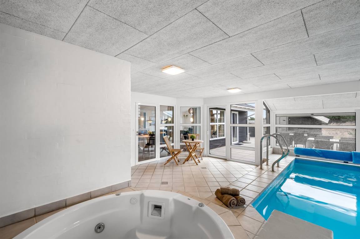 Das Haus eignet sich für 10 Personen und ist mit 5 schönen und gemütlichen Schlafzimmern sowie ein kleines, gemütliches offenes Obergeschoss eingerichtet. Eine gut ausgestattete Küche, in der Sie die Morgensonne genießen können, lädt dazu ein sich kulinarisch zu entfalten. Sowohl von der Küche als auch von der Essecke haben Sie Einblick in die schöne Swimmingpool-Abteilung mit großem Whirlpool (Standwasser) und Sauna. Im gemütlichen Wohnzimmer mit Wärmepumpe können Sie sich an kalten Tagen am Kaminofen, der gemütlich knistert, aufwärmen während Sie sich einen guten Film ansehen oder es sich mit einem Buch gemütlich machen.