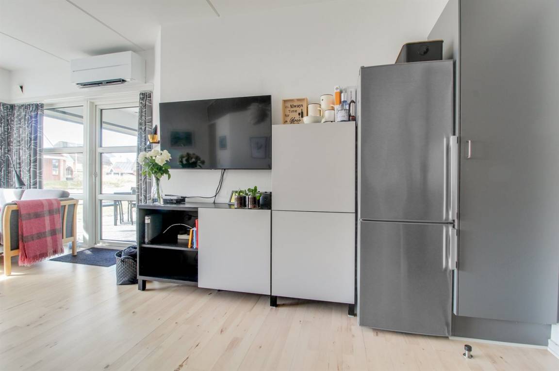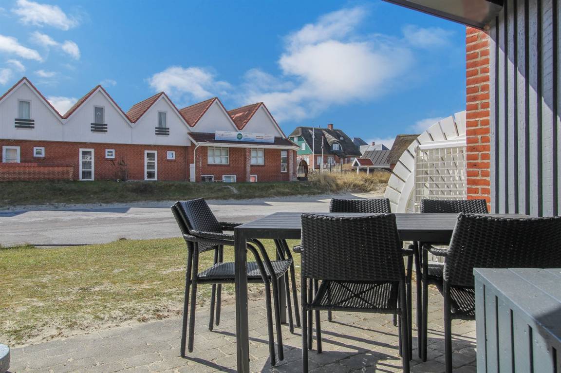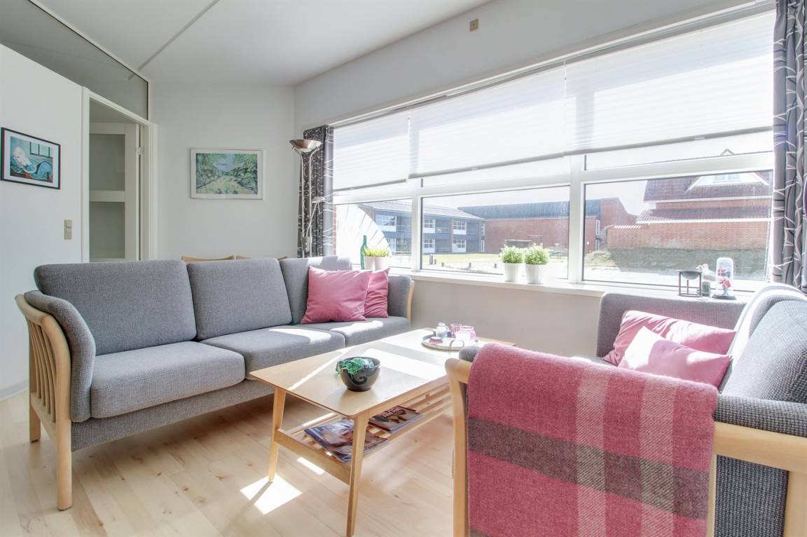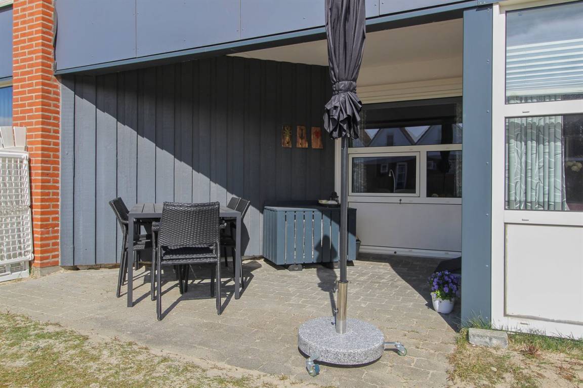 Hier wohnen Sie nur einen Katzensprung von einem der feinsten Sandstrände Dänemarks entfernt. Diese schöne Ferienwohnung liegt im Erdgeschoss, in einer Ferienanlage mit mehreren individuell eingerichteten Wohnungen. Die Terrasse der Ferienwohnung ist zum Gemeinschaftsgelände, mit Spielplatz und Grillbereich hinaus, ausgerichtet. Übrigens: Der Schlafplatz auf der Schlafcouch befindet sich im Wohnzimmer. Es stehen verschiedene Gemeinschaftseinrichtungen wie z. B. Darts, Airhockey, ein Raum wo die Kinder zeichnen können, eine Bibliothek sowie eine Münzwäscherei zur Verfügung. Es besteht außerdem die Möglichkeit in der großen Eingangshalle eine Tasse Kaffee zu genießen. Die Ferienanlage liegt mit einer der ältesten Golfanlagen "Rømø Golf Links", wo Sie auch Minigolf und Tennis spielen können, als nächsten Nachbarn. Genießen Sie die atmosphäre die Fanø Bad schon seit vielen Jahren zu etwas ganz besonderem macht und unternehmen Sie einen Spaziergang durch das schöne, historische Gebiet, wo Sie in der ersten Dünenreihe immer noch einige der alten Ferienvillen sehen können.