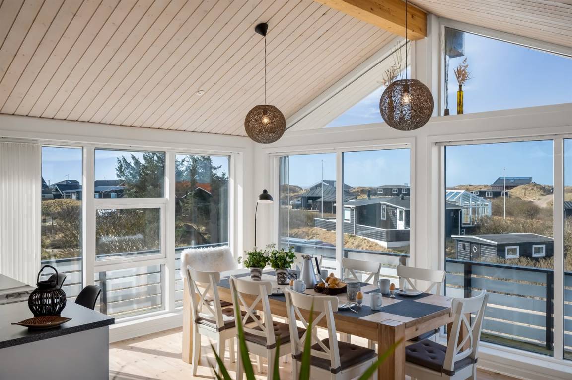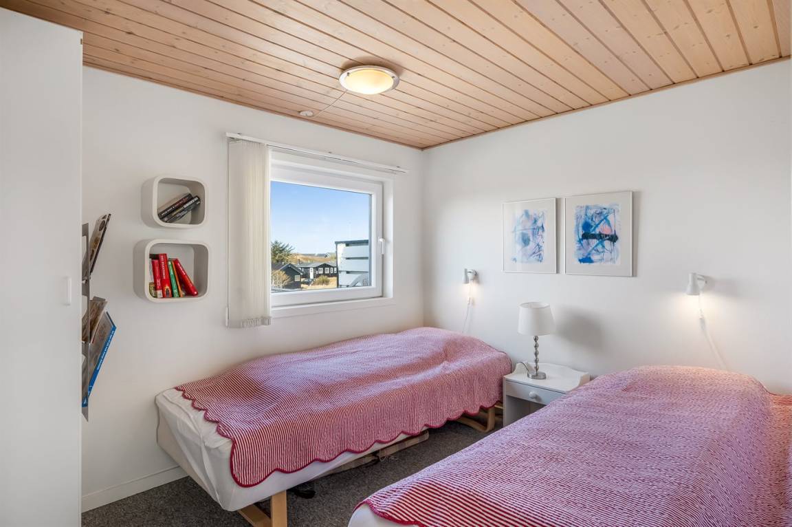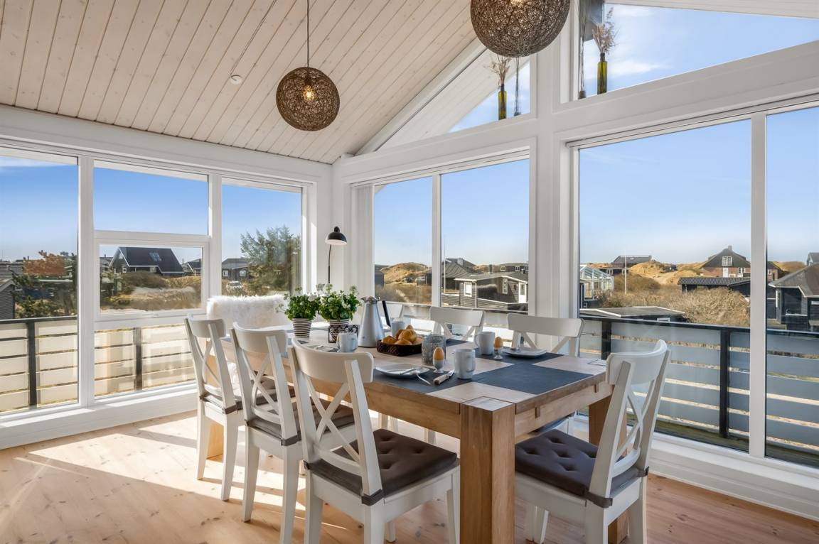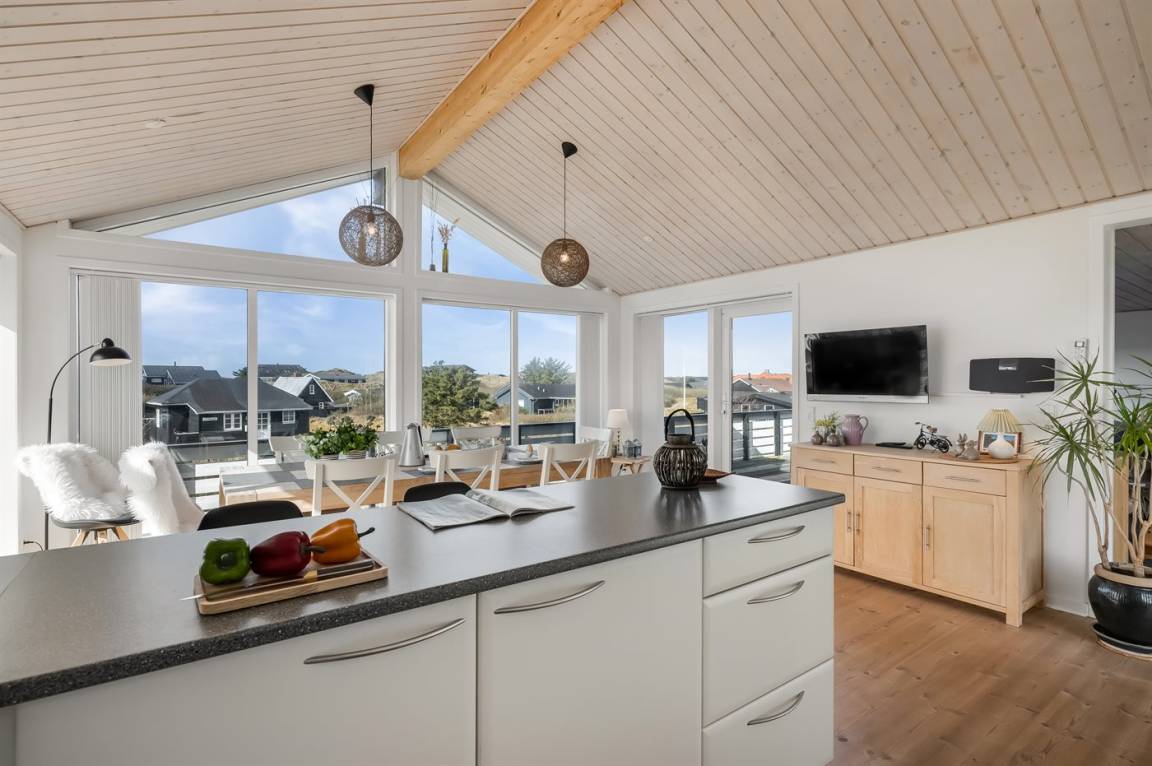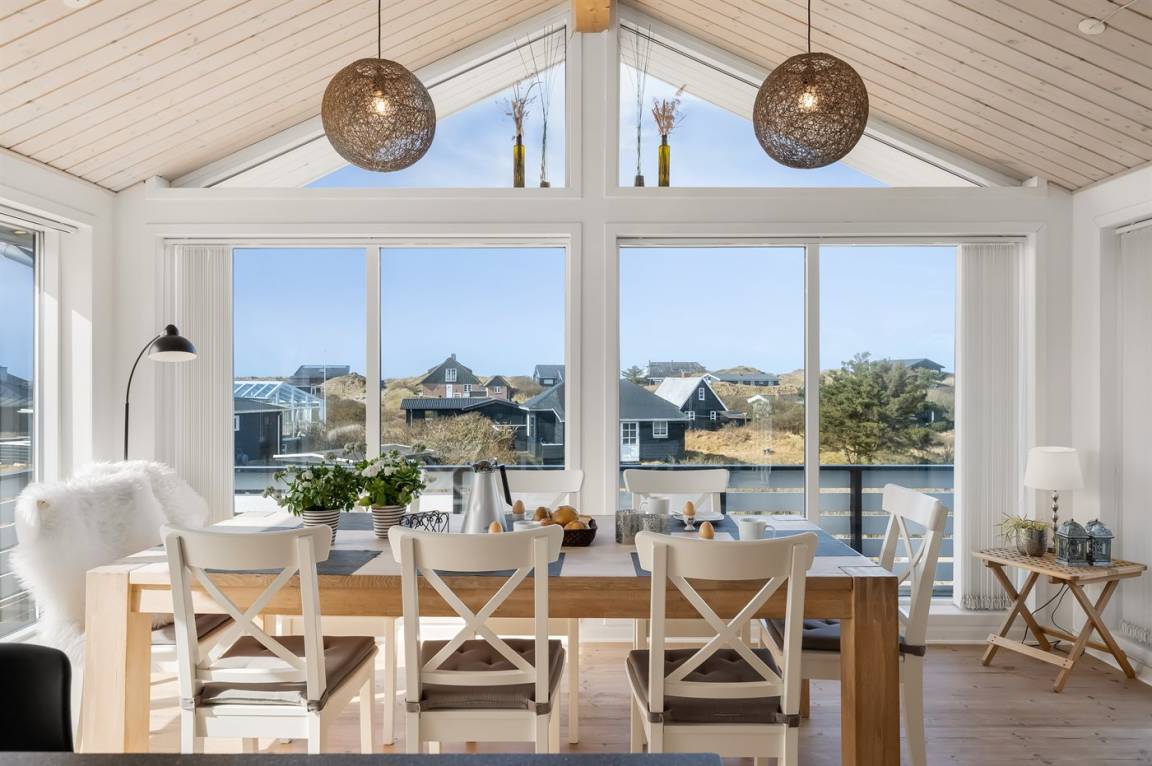 Hoch auf einer Düne gelegen und mit schöner Aussicht auf das Gebiet, liegt dieses persönliche und gepflegte Haus. 2009 wurde eine Essecke und eine Küche angebaut. Der Anbau hat schräge Wände und große Fenster. Gemütliche Wohnstube mit Brennofen. 2009 ist auch ein neues Badezimmer mit Waschmaschine hinzugekommen. 3 gute Schlafzimmer mit Einzel-und Doppelbetten. Es gibt mehrere Ausfahrten auf die große Terrasse, die das ganze Haus umgibt. Ein Haus, wo Sie auf jeden Fall wiederkommen.