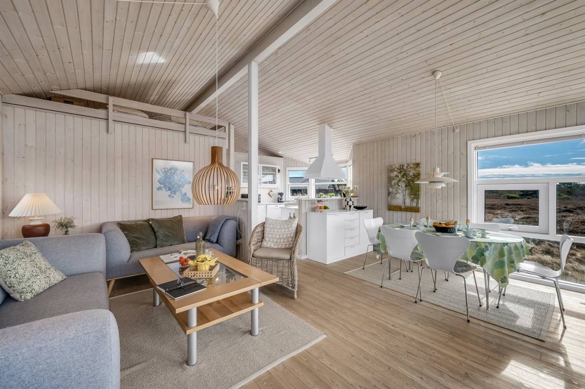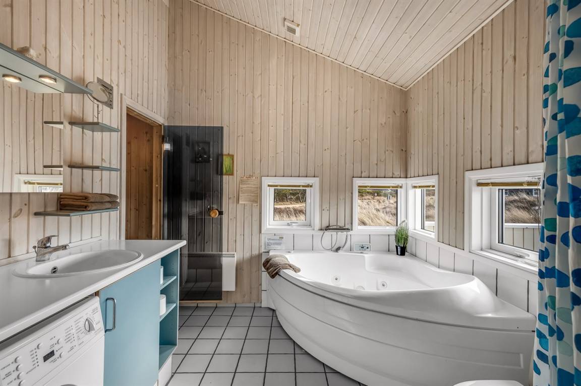 Äußerst schönes, helles Haus mit geschmackvoller und gemütlicher Einrichtung. Das Haus ist wunderschön gelegen am Rande großer Naturschutzgebiete und lädt die ganze Familie zur Entspannung im Urlaub ein. Es sind 3 Schlafräume vorhanden, die sich mit 2 Zimmer mit Doppelbetten und 1 Zimmer mit Einzelbetten verteilen. Darüber hinaus hat das Haus einen Hems mit 2 Matratzen. Badezimmer mit Spa und Sauna. Die Küche mit Geschirrspüler und Mikrowelle.