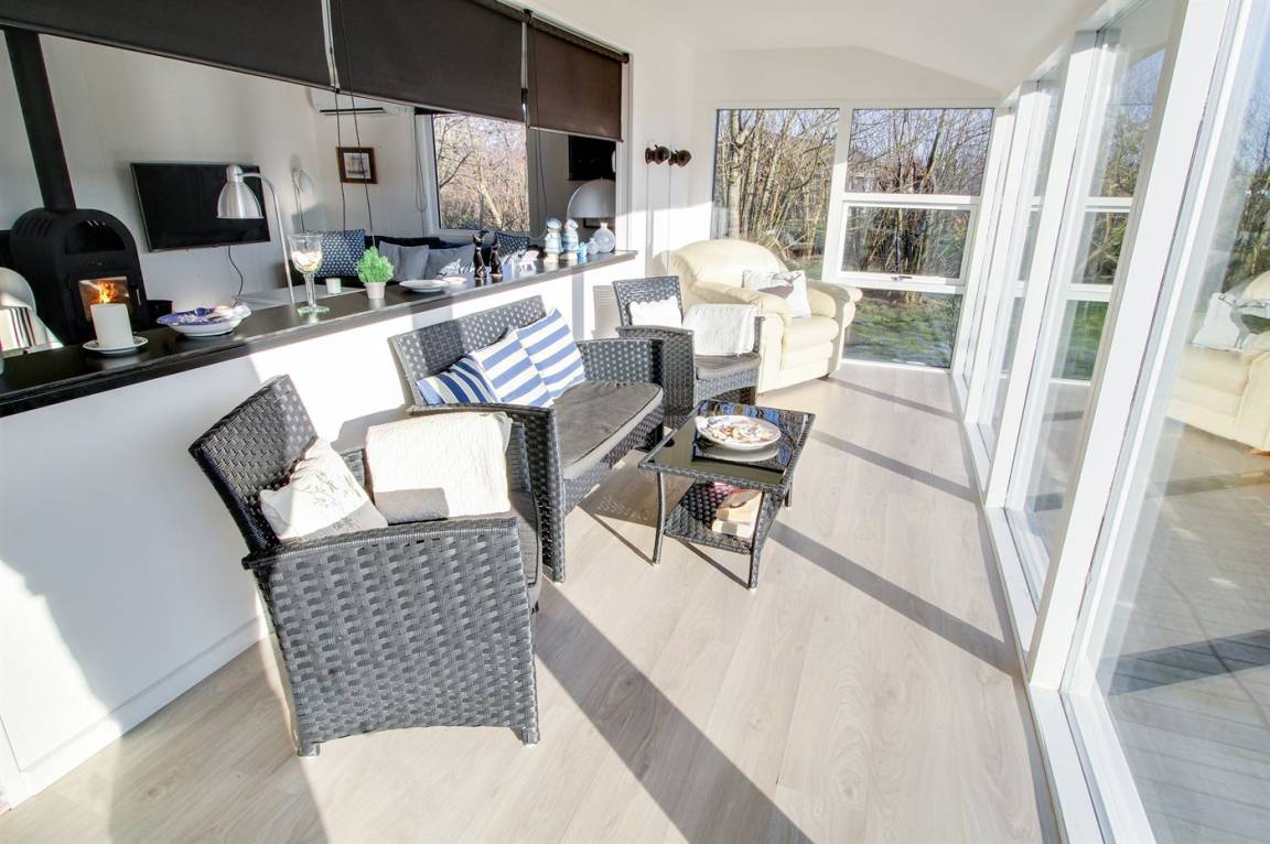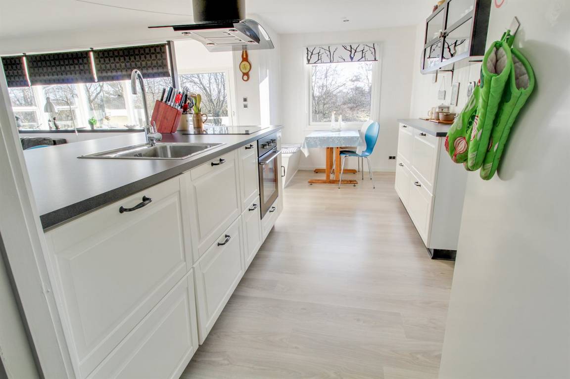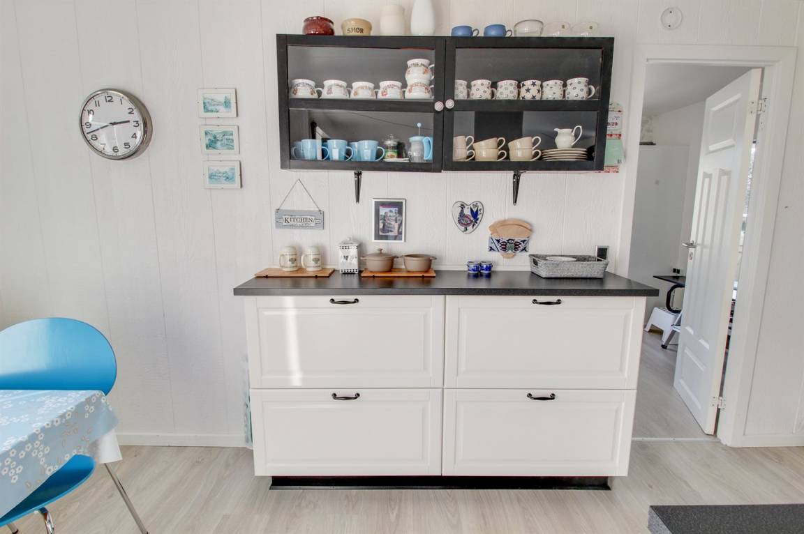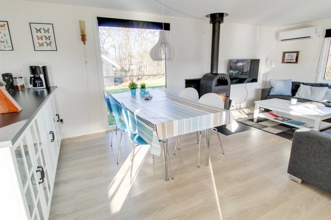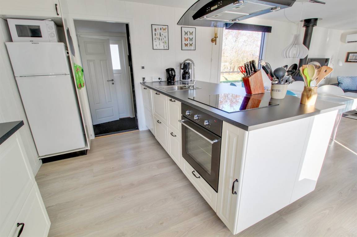 Hier können wir Ihnen ein schönes und teilweise renoviertes Ferienhaus, in ruhiger und naturschöner Umgebung, anbieten. Die moderne und Küche ist mit dem nett möblierten Wohnzimmer kombiniert.