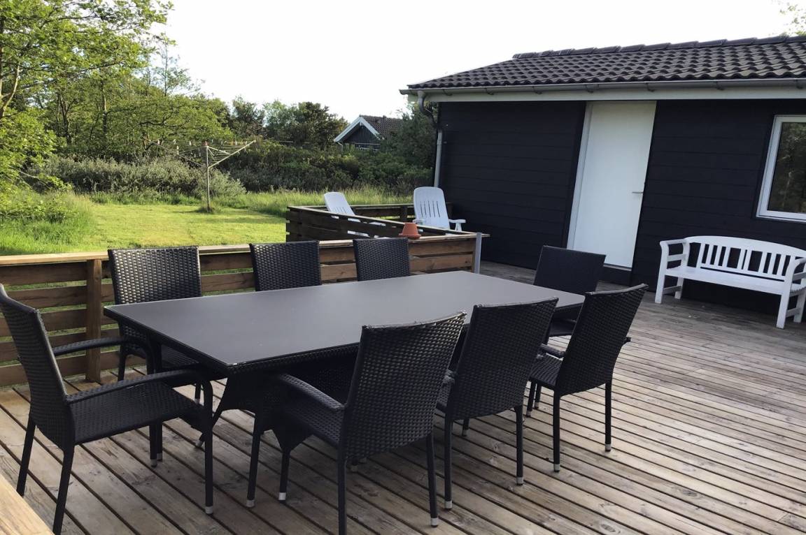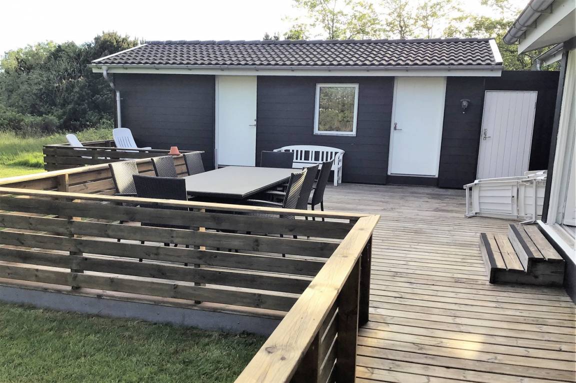DraußenDie Ferienunterkunft liegt auf einem 2500 m² großen Naturgrundstück. Die Entfernung zum Meer beträgt 1000 m. Die nächste Einkaufsmöglichkeit liegt 1200 m entfernt. Es steht ein 60 m² Terrassenareal zur Verfügung.