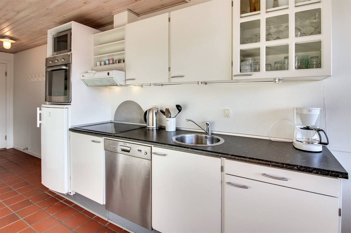 KücheDie Küche ist mit Kühlschrank ausgestattet. Außerdem gibt es 4 Induktions-Kochzonen, Umluftofen, Mikrowelle sowie Geschirrspüler.
