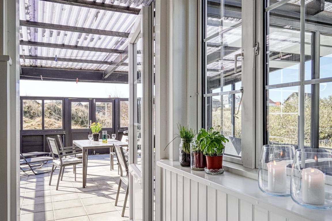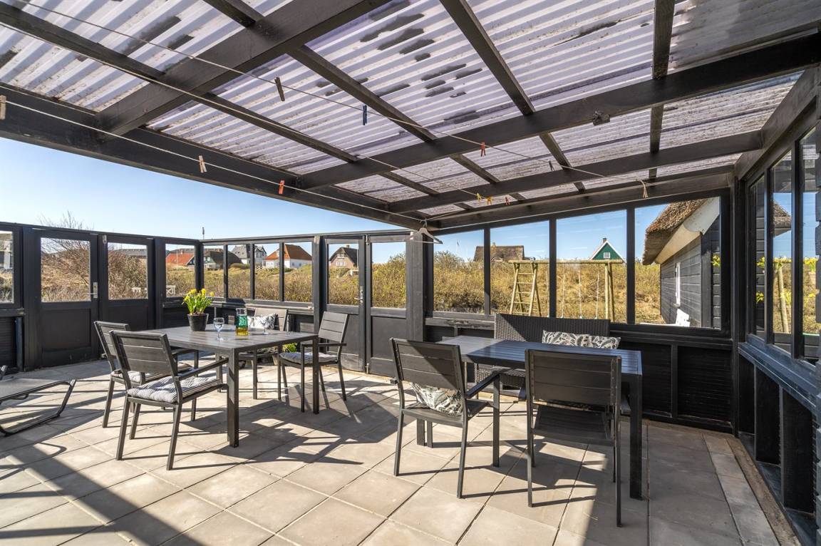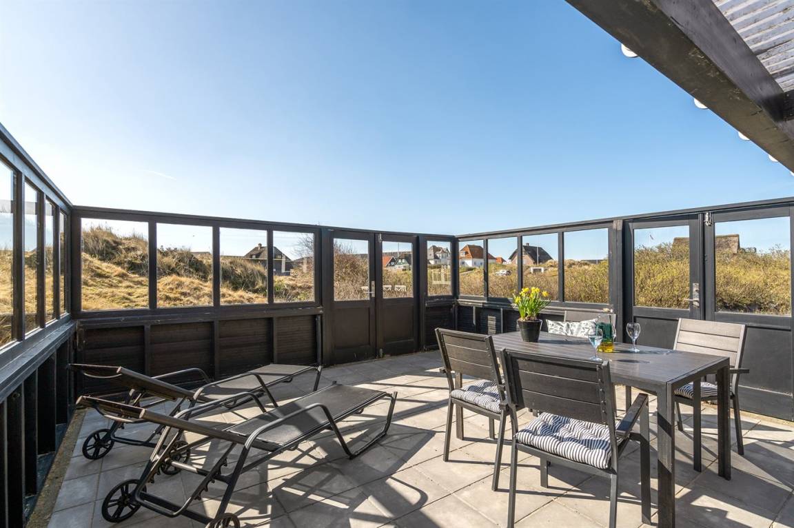 DraußenDie Ferienunterkunft liegt auf einem 926 m² großen Dünengrundstück. Die Entfernung zum Meer beträgt 100 m. Die nächste Einkaufsmöglichkeit liegt 500 m entfernt. In einem Abstand von 20 m gibt es einen Golfplatz. Es steht ein 25 m² Terrassenareal zur Verfügung. Davon insgesamt 25 m² geschlossene Terrasse. Zutritt zu einem Atriumgarten. Parkplatz auf dem Grundstück.