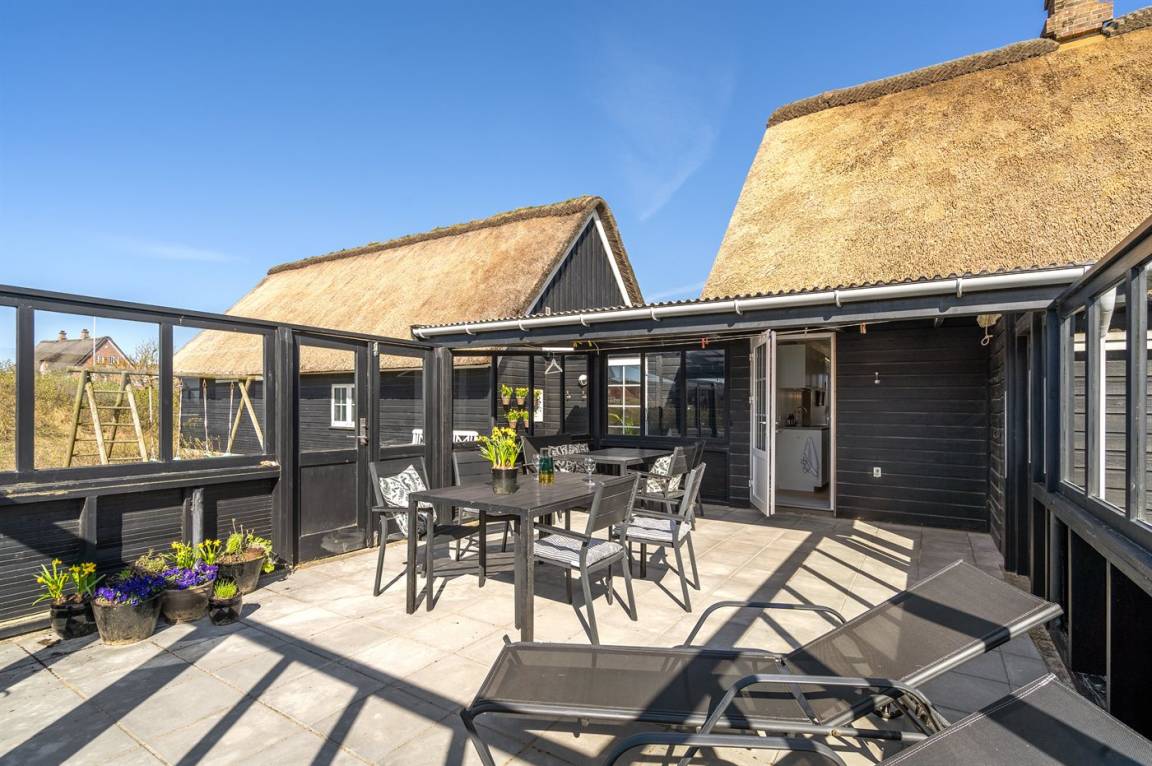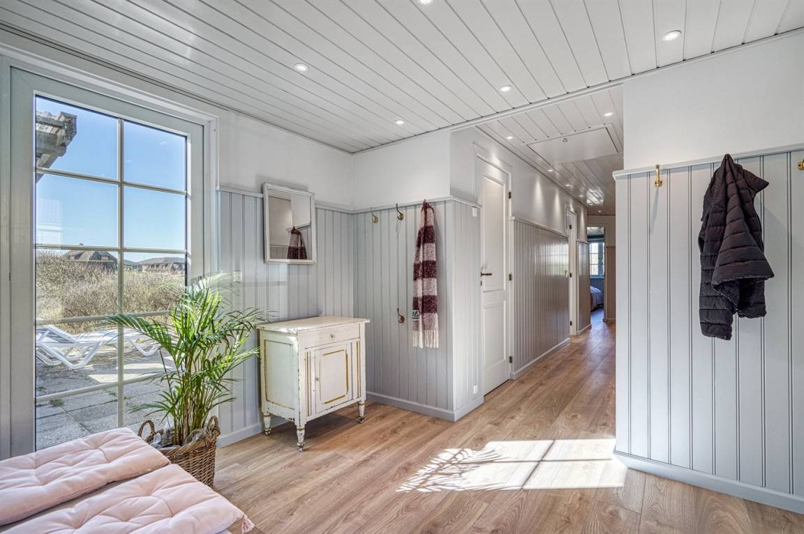 Dieses äußerst geschmackvoll eingerichtete Ferienhaus wurde 2022 komplett renoviert und begrüßt Sie heute hell und einladend. Das Haus liegt auf einem schönen Naturgrundstück mitten in Fanøs ältestem Urlaubsgebiet Fanø Bad – 50 m vom Golfplatz und 100 m vom Strand entfernt. Hier haben Sie eine tolle Aussicht auf den Golfplatz und den Norden Fanøs. Das Ferienhaus wurde mit allen modernen Annehmlichkeiten ausgestattet, die man für einen entspannten Urlaub in einem fantastischen und luxuriösen Umfeld braucht. Das Haus hat eine Wohnfläche von 174 m² und ist mit 3 Toiletten und 4 Schlafzimmern ausgestattet. Hier ist also genug Platz für 8 Übernachtungsgäste.