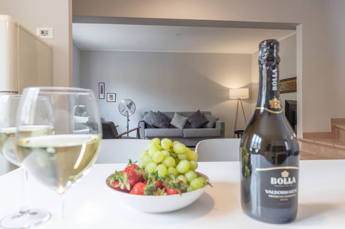 Wohnküche: gut ausgestattete Küche, Esstisch, Spülmaschine, Kühlschrank, Tiefkühler, Mikrowelle, Herd, Ofen, Toaster, Italienische Kaffeemaschine, Amerikanische Kaffeemaschine, Waschmaschine, Schreibtisch, Doppel-Schlafsofa, WiFi Internet, Internet, Satelliten-TV, tragbarer Ventilator.