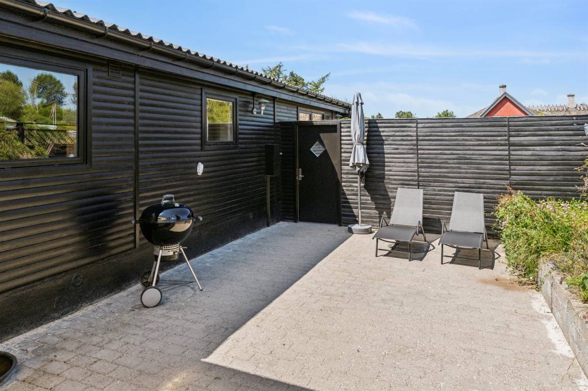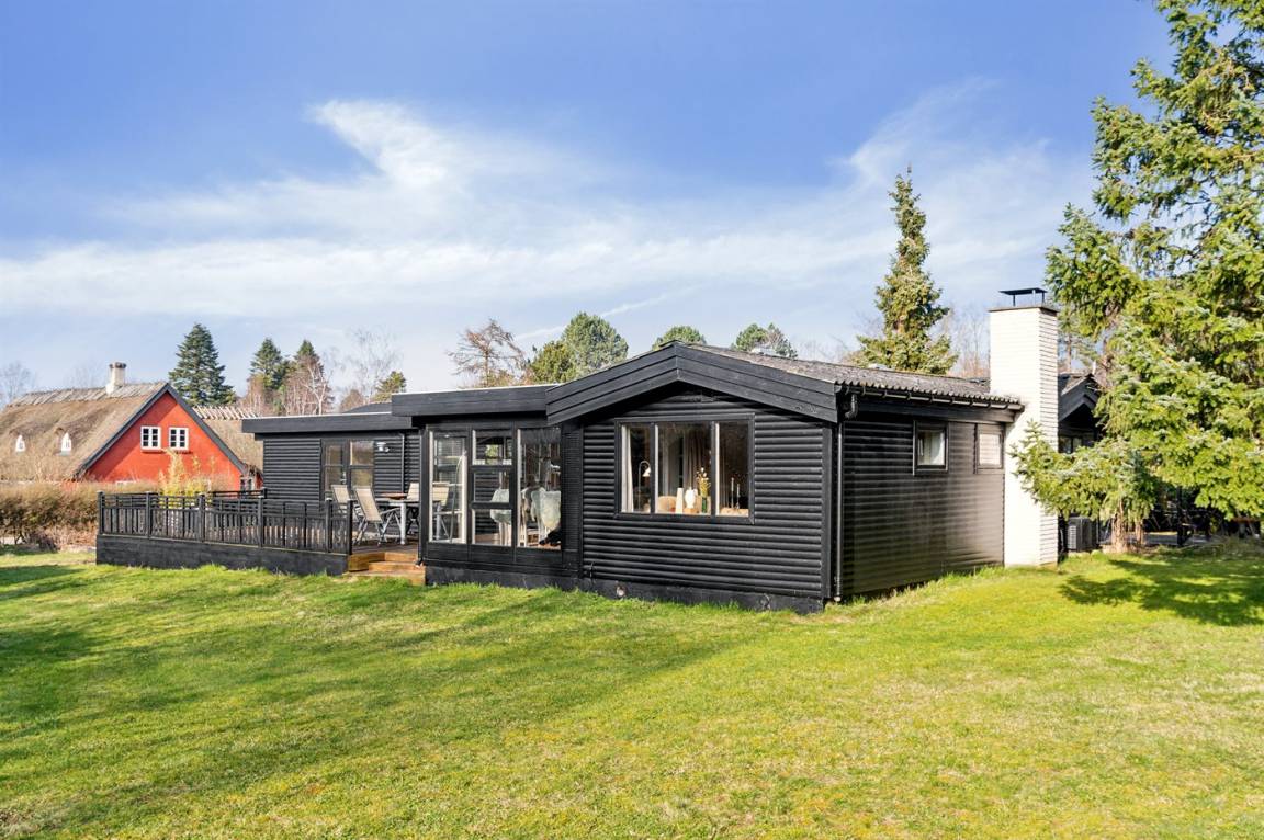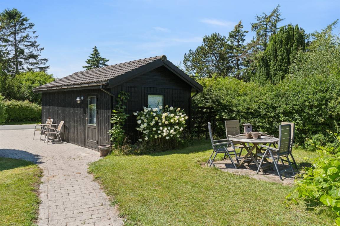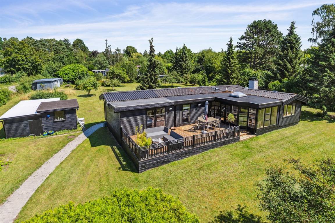 Das Haus befindet sich in einer ruhigen Ferienhaussiedlung, umgeben von schöner Natur und nur 750 Meter vom Strand entfernt und nur 1100 Meter vom sehr beliebten Ordrup Strand, wo es einen Badesteg gibt, der weit ins Wasser führt. Es sind nur 600 Meter zu Restaurants, Eisdielen und Einkaufsmöglichkeiten (alle saisonal geöffnet). Im nahegelegenen Kårup Skov gibt es für die Kinder einen großen Spielplatz mit unter anderem Seilbahn, Rutsche, Aussichtsturm und Spielhäuser.