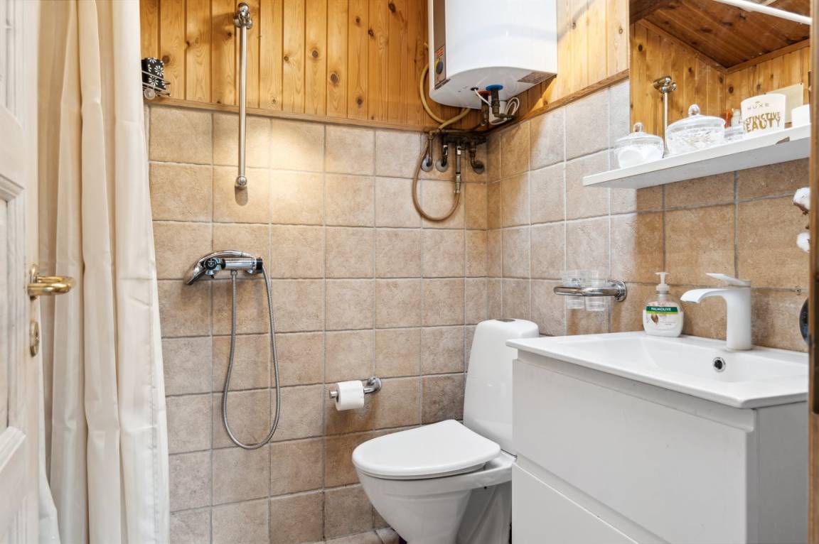 Es gibt eine direkte Verbindung von der Küche zum Essbereich im Wintergarten, von hier aus gelangt man ins Wohnzimmer mit Kaminofen. Es gibt 3 Schlafzimmer, von denen 2 sich in einem neueren Anbau von 2010 befinden. Es gibt 2 Badezimmer, wovon eines 2023 eingerichtet wurde. Es gibt eine Waschmaschine und einen Trockner.