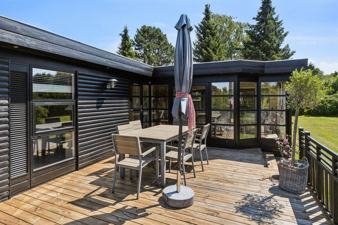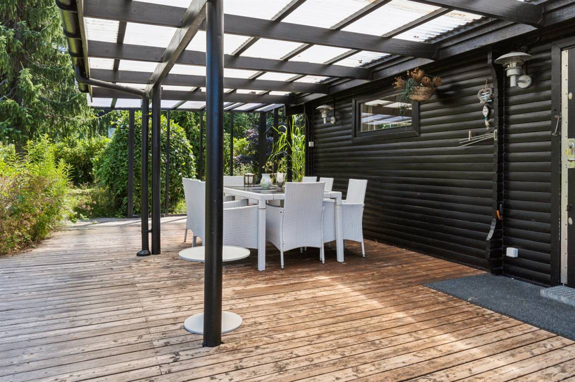 Das Haus liegt auf einem großen Grundstück mit reichlich Platz zum Spielen und Ballspielen mit den Kindern und der Möglichkeit, sich am Lagerfeuer zu erholen. Auf beiden Seiten des Hauses gibt es schöne Terrassen mit sowohl überdachtem Terrassenbereich als auch einem schönen Wintergarten. Hier ist es immer möglich, die Sonne im Schutz zu genießen oder Schatten zu finden.