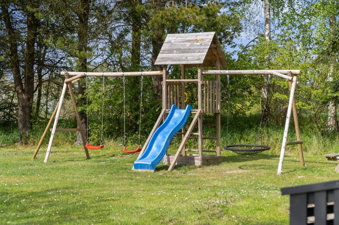 DraußenDie Ferienunterkunft liegt auf einem 22000 m² großen Naturgrundstück. Die Entfernung zum Meer beträgt 1550 m. Es gibt einen Badesteg in der Nähe. Die nächste Einkaufsmöglichkeit liegt 2300 m entfernt. In einem Abstand von 2300 m gibt es einen Golfplatz. Es steht ein offenes Terrassenareal zur Verfügung. Außerdem gibt es überdachte Terrasse. Schaukel. Sandkasten. Spielturm. Rutsche.An Sommerabenden sorgt der Außenkamin für eine gemütliche Atmosphäre. Es steht ein Grill zur Verfügung. Es steht ein Carport zur Verfügung. Parkplatz auf dem Grundstück.