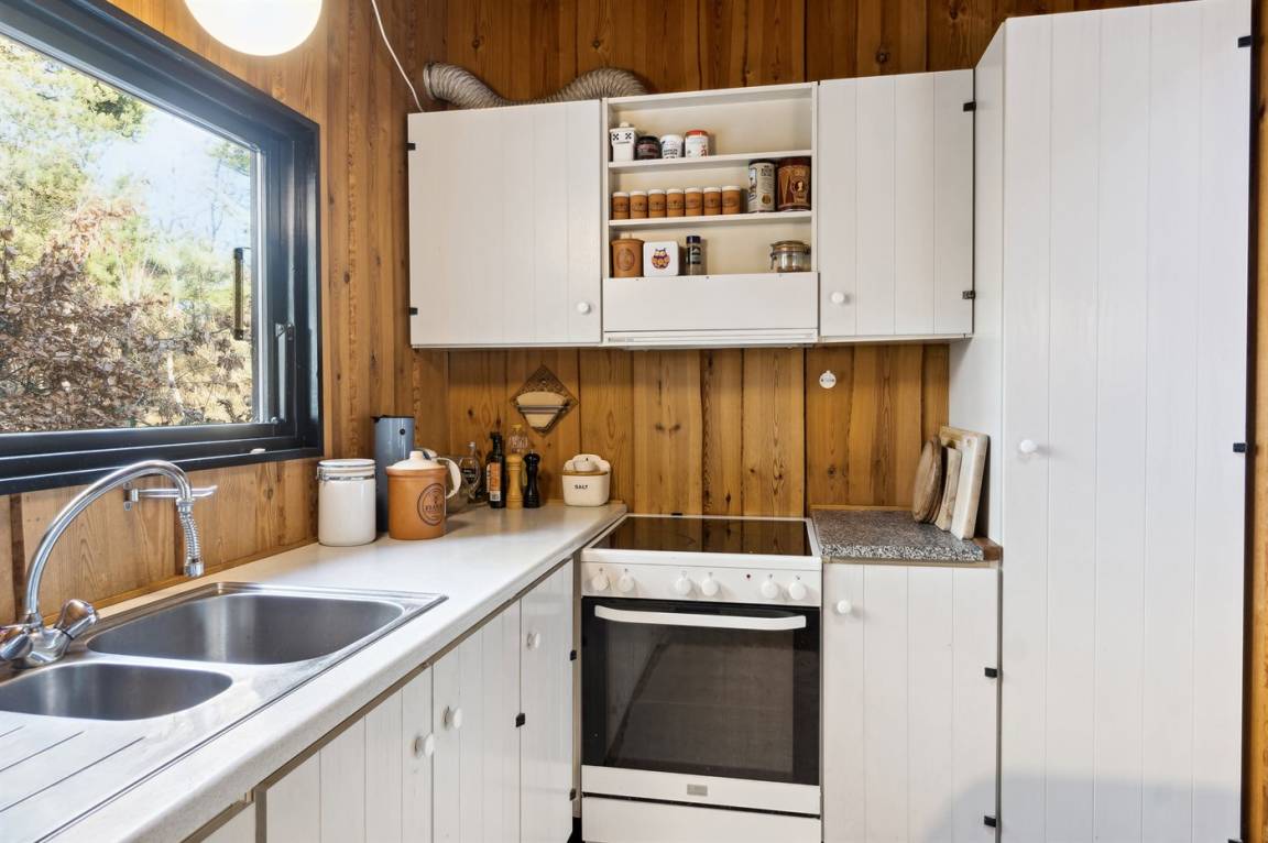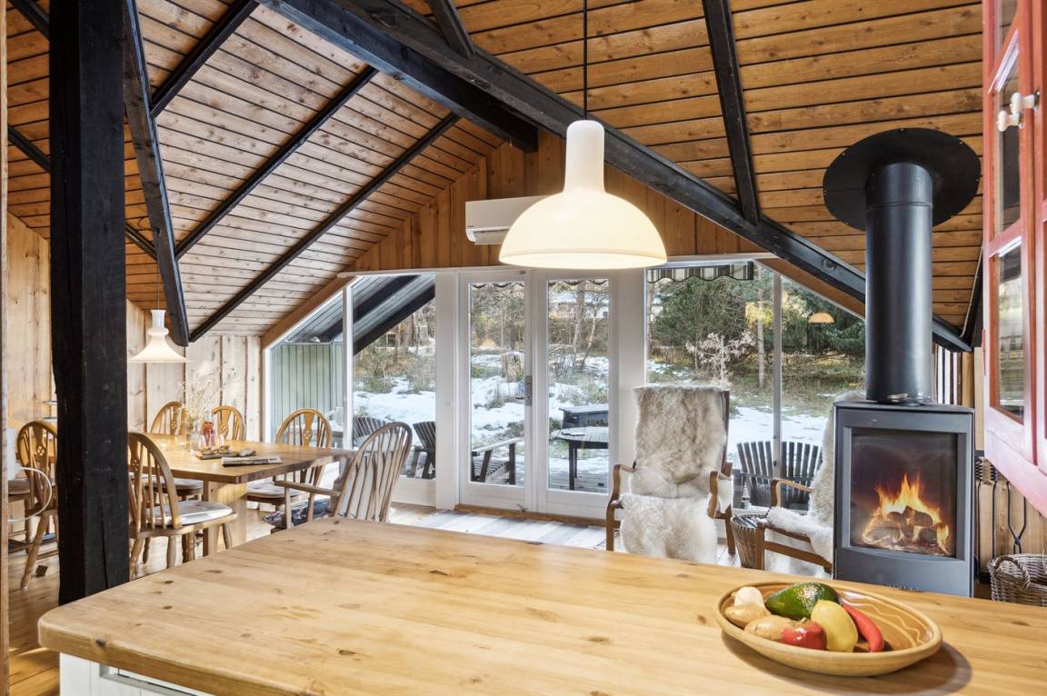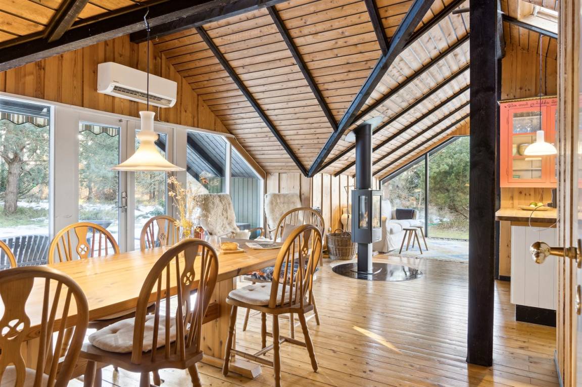 Im Haus ist der gemütliche Küchen- und Wohnbereich der natürliche Treffpunkt. Es gibt 3 Schlafzimmer im Hauptgebäude sowie ein Gästehaus mit 2 Schlafplätzen. Das Gästehaus befindet sich nur 5 Meter vom Hauptgebäude entfernt. Das Haus wird umweltfreundlich mit einer Luft-Luft-Wärmepumpe beheizt, und für gemütliche Stunden gibt es einen Holzofen. Um das Haus herum gibt es gute Terrassen, und hinten auf dem Grundstück befindet sich ein überdachter Terrassenbereich. Es gibt auch einen Carport.