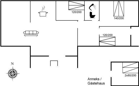 SchlafverhältnisseDie Schlafplätze verteilen sich auf 4 Schlafräume. 2 Schlafplätze in einem Doppelbett. 4 Schlafplätze in Einzelbetten. 2 von diesen Schlafplätzen befinden sich im Gästehaus.