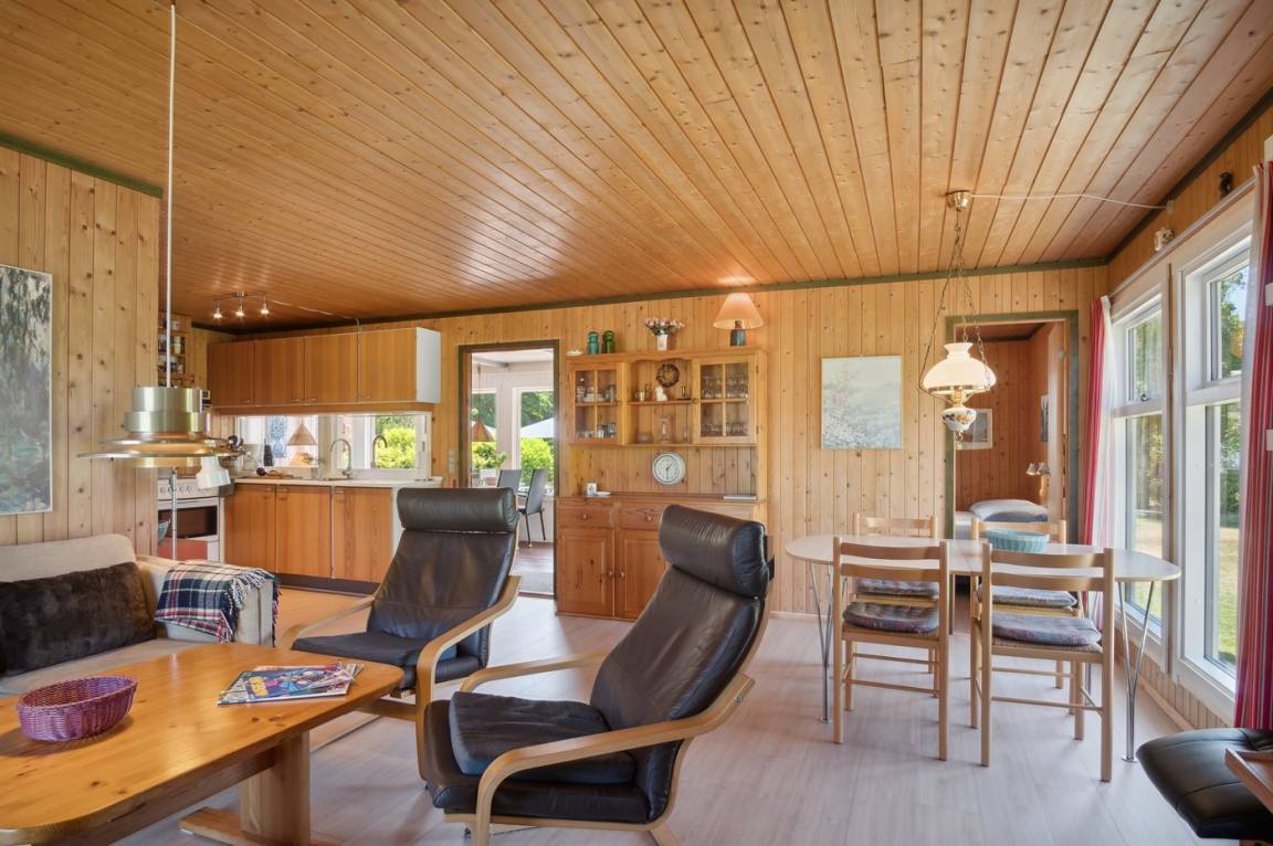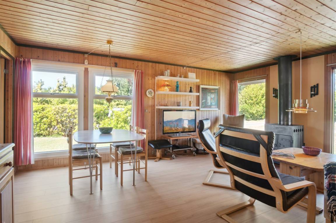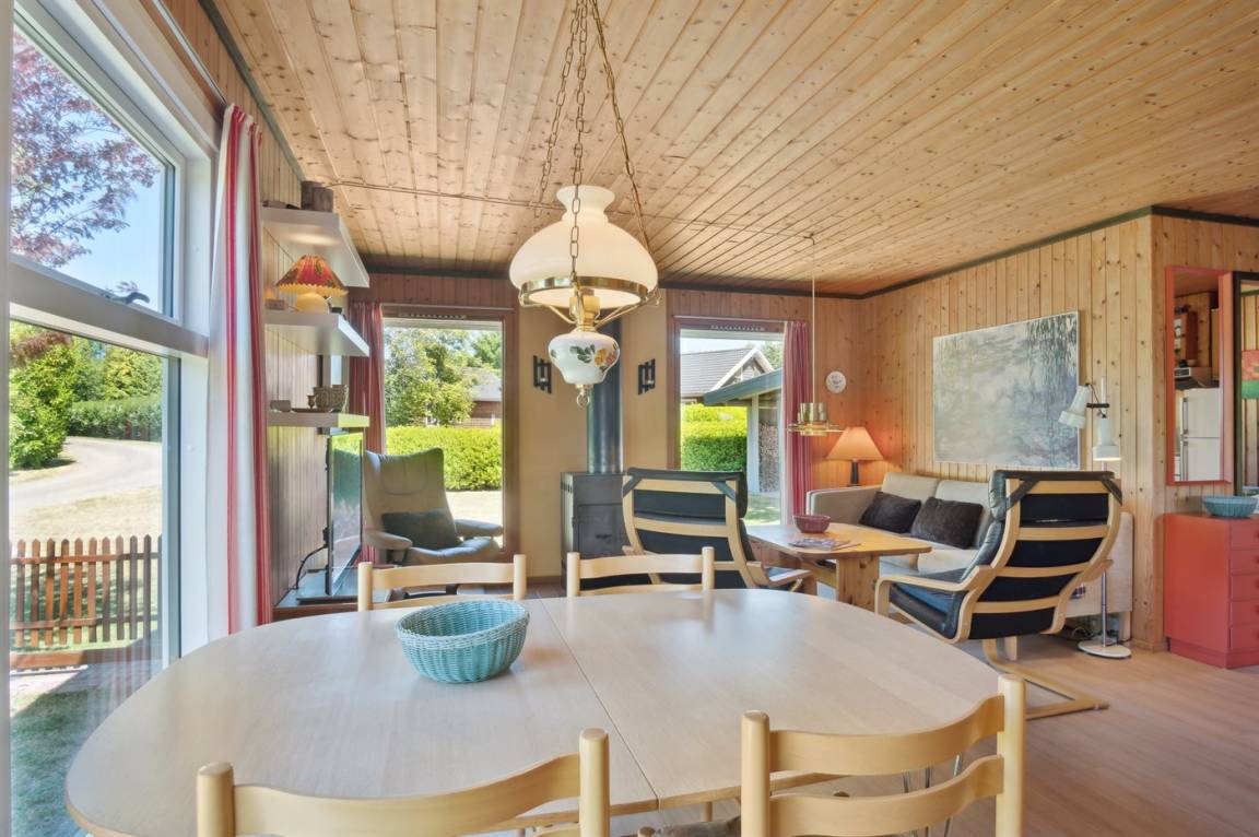 Dieses schöne Ferienhaus liegt in ruhiger und abgelegener Umgebung, als letztes Ferienhaus am Ende einer Sackgasse und mit einem Garten, der an ein offenes Gebiet grenzt. Das Haus befindet sich in Ordrup, in einer hügeligen und landschaftlich reizvollen Gegend mit Strand und Wald in der Nähe. Der nächste Badestrand ist 1800 Meter entfernt und der beliebte Ordrup Strand ist 2500 Meter entfernt, wo es einen guten Badesteg gibt, der weit ins Wasser führt.