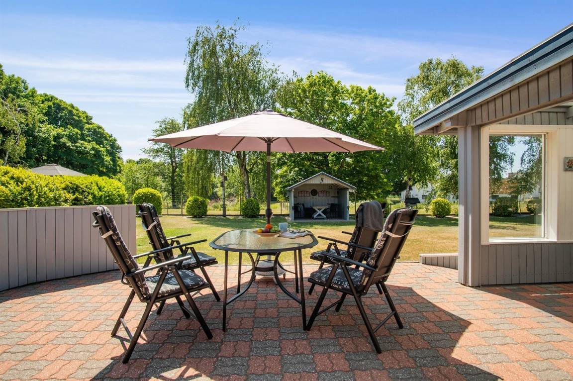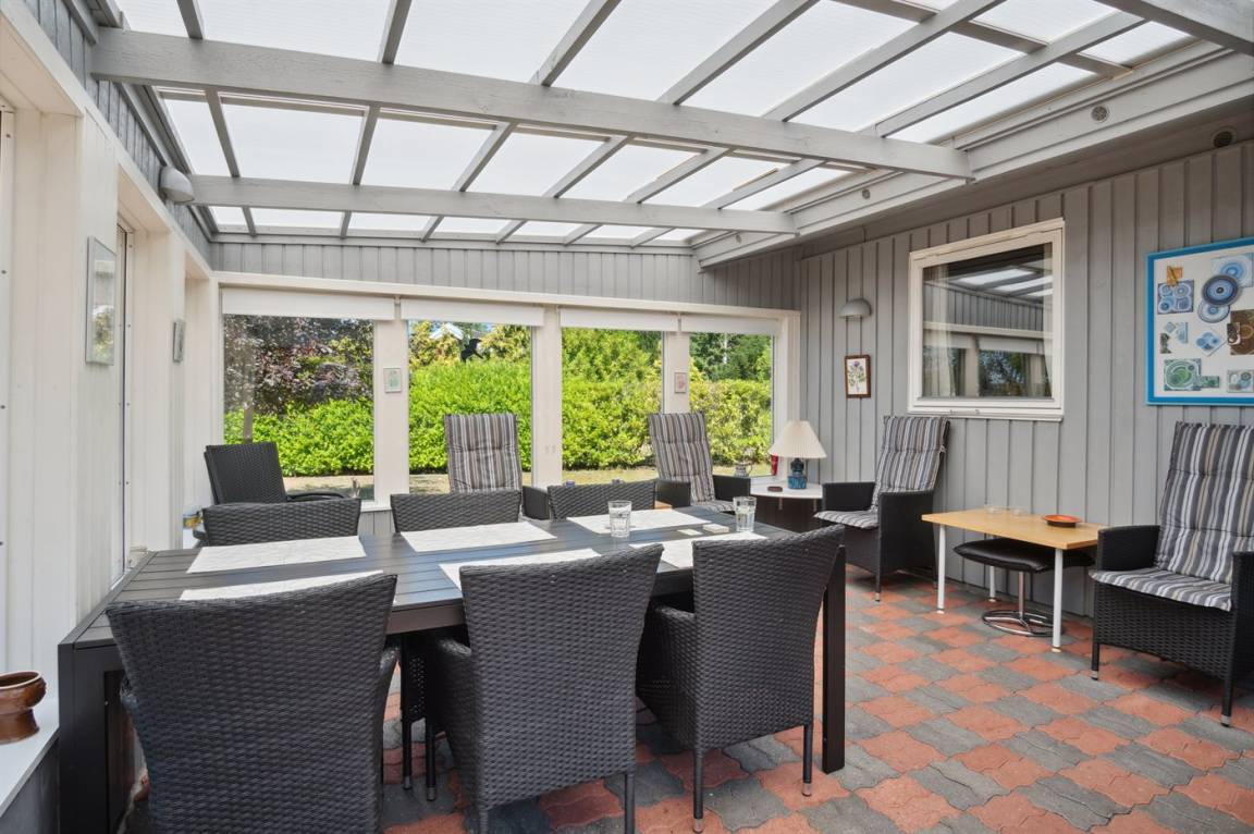 DraußenDie Ferienunterkunft liegt auf einem 1230 m² großen Gartengrundstück. Das Grundstück ist eingezäunt. Die Entfernung zum Meer beträgt 1800 m. Die nächste Einkaufsmöglichkeit liegt 2000 m entfernt. In einem Abstand von 1500 m gibt es einen Golfplatz. Es steht ein 45 m² Terrassenareal zur Verfügung. Außerdem gibt es überdachte Terrasse. Zutritt zu einem Wintergarten. Geräteraum. Sandkasten. Es steht ein Grill zur Verfügung. Es steht ein Carport zur Verfügung. Parkplatz auf dem Grundstück.