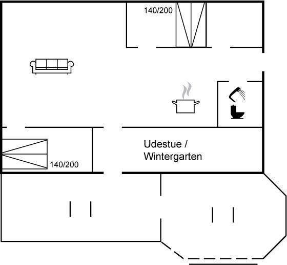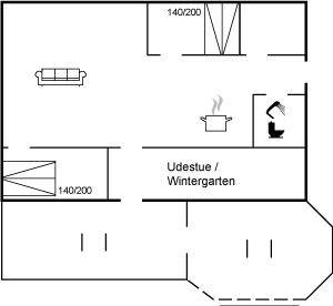 SchlafverhältnisseDie Schlafplätze verteilen sich auf 3 Schlafräume. 4 Schlafplätze in Doppelbetten. 2 Schlafplätze in einem Etagenbett. Ferner steht ein Kinderbett zur Verfügung.